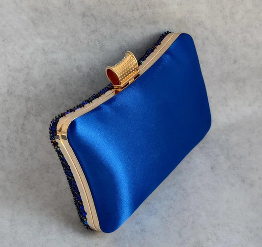 Peacock Feather Iridescent Sequin Beaded Clutch with Structured Hard Case