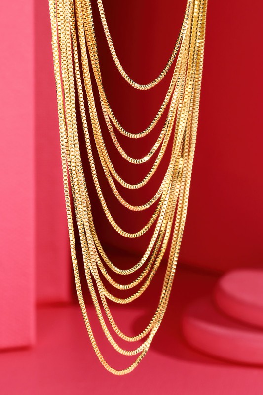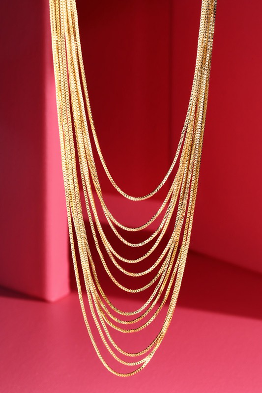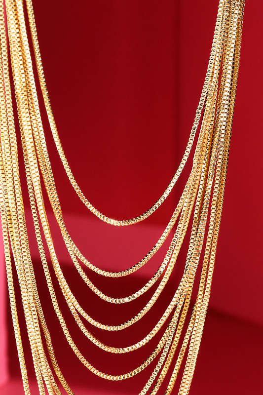 Classic 12 layered box chain necklace with lobster clasps closure *Metal *Lead Compliance *APPROX. L 13.5" - 19.5" EXT 3". 1.02oz *Imported