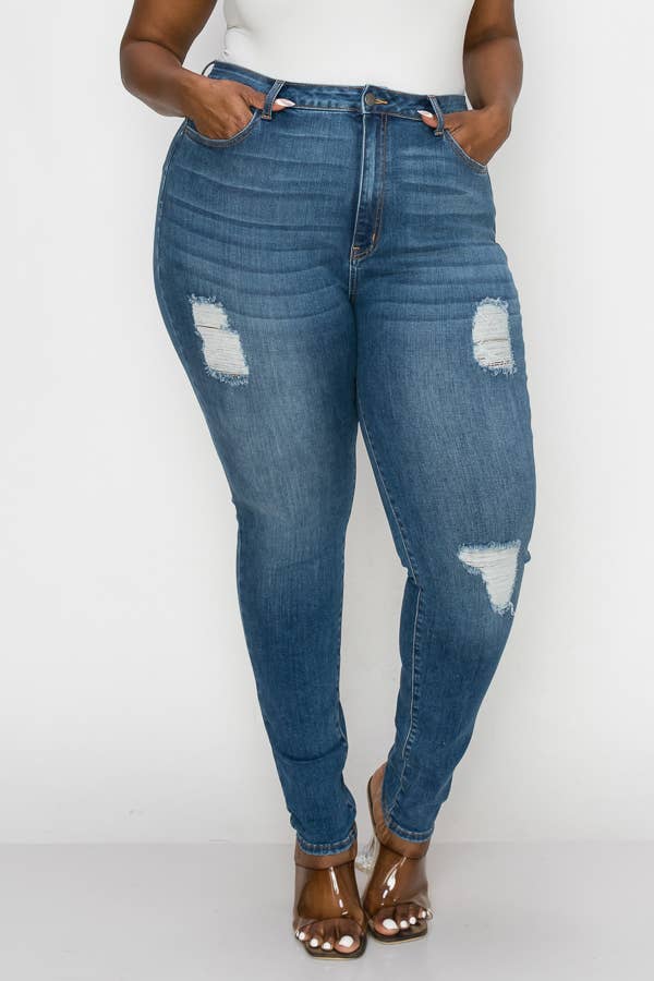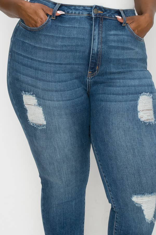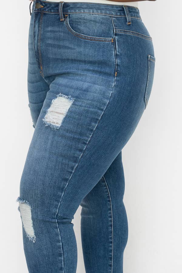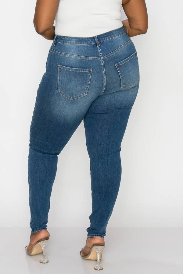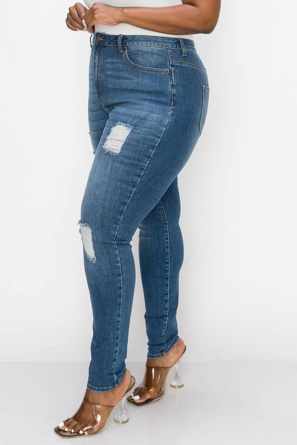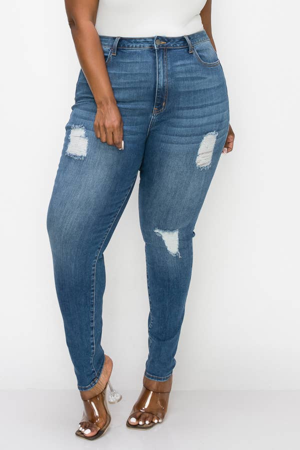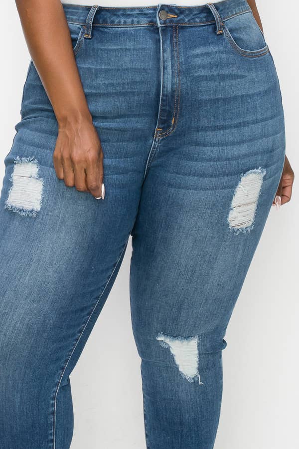 PLUS CURVY SKINNY GENTLY DESTROYED JEANS