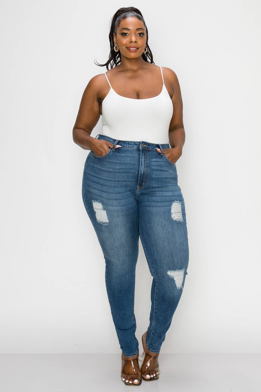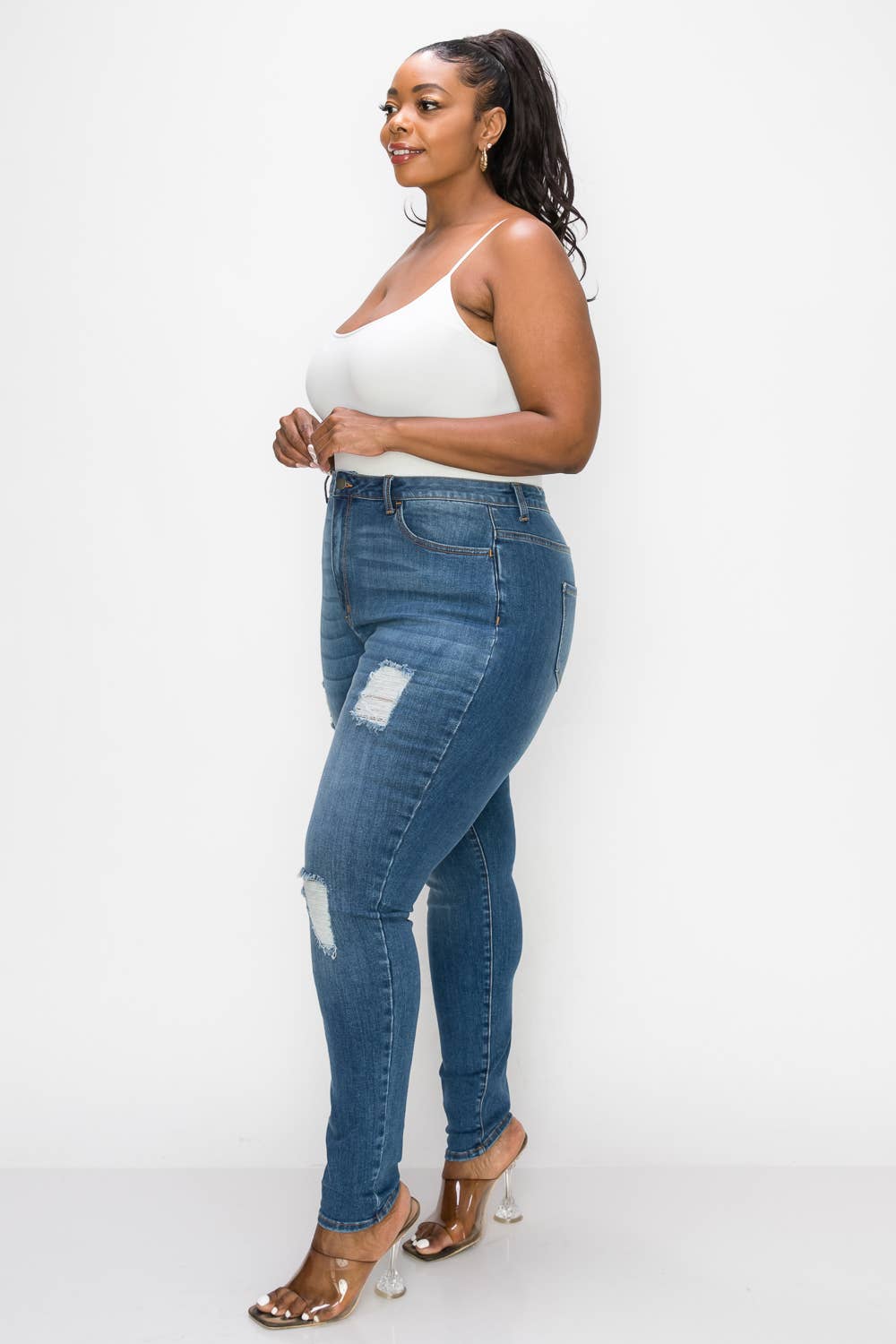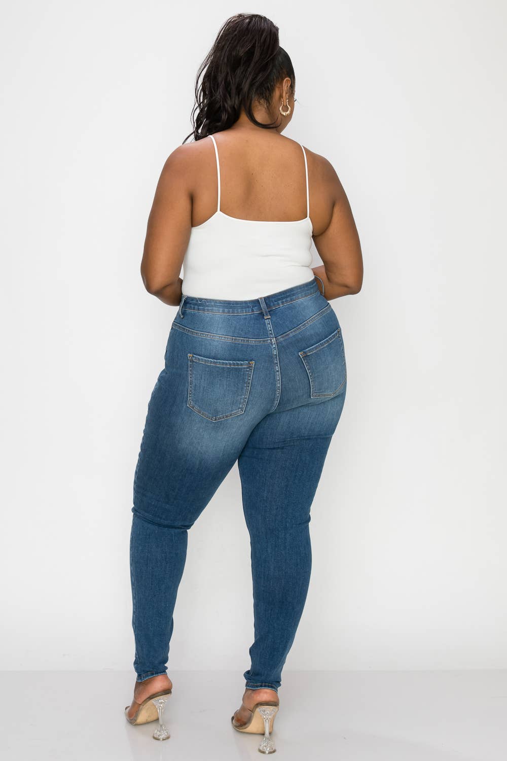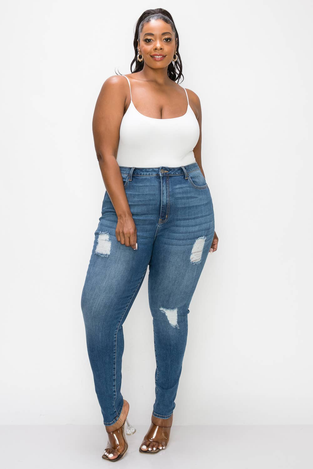 PLUS CURVY SKINNY GENTLY DESTROYED JEANS