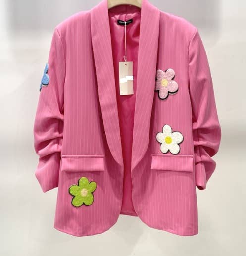 Barbie Pink Italian Striped 3D Floral Blazer