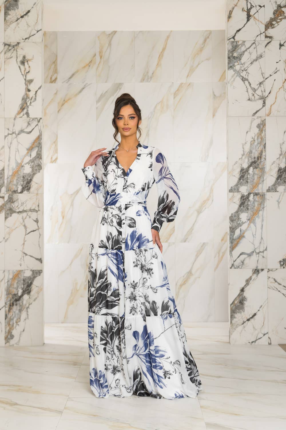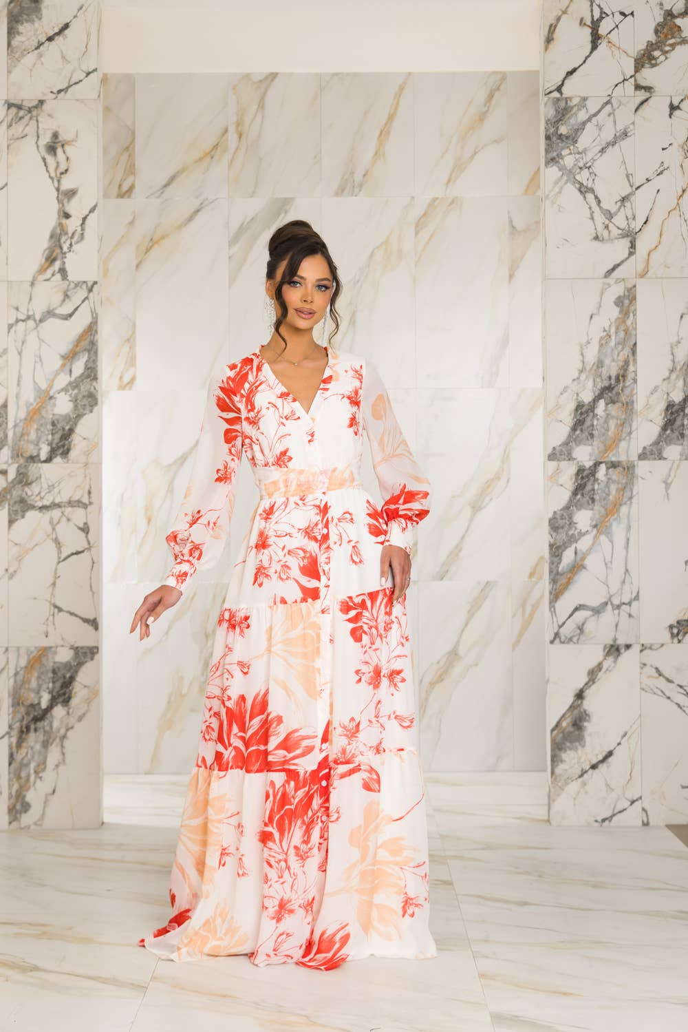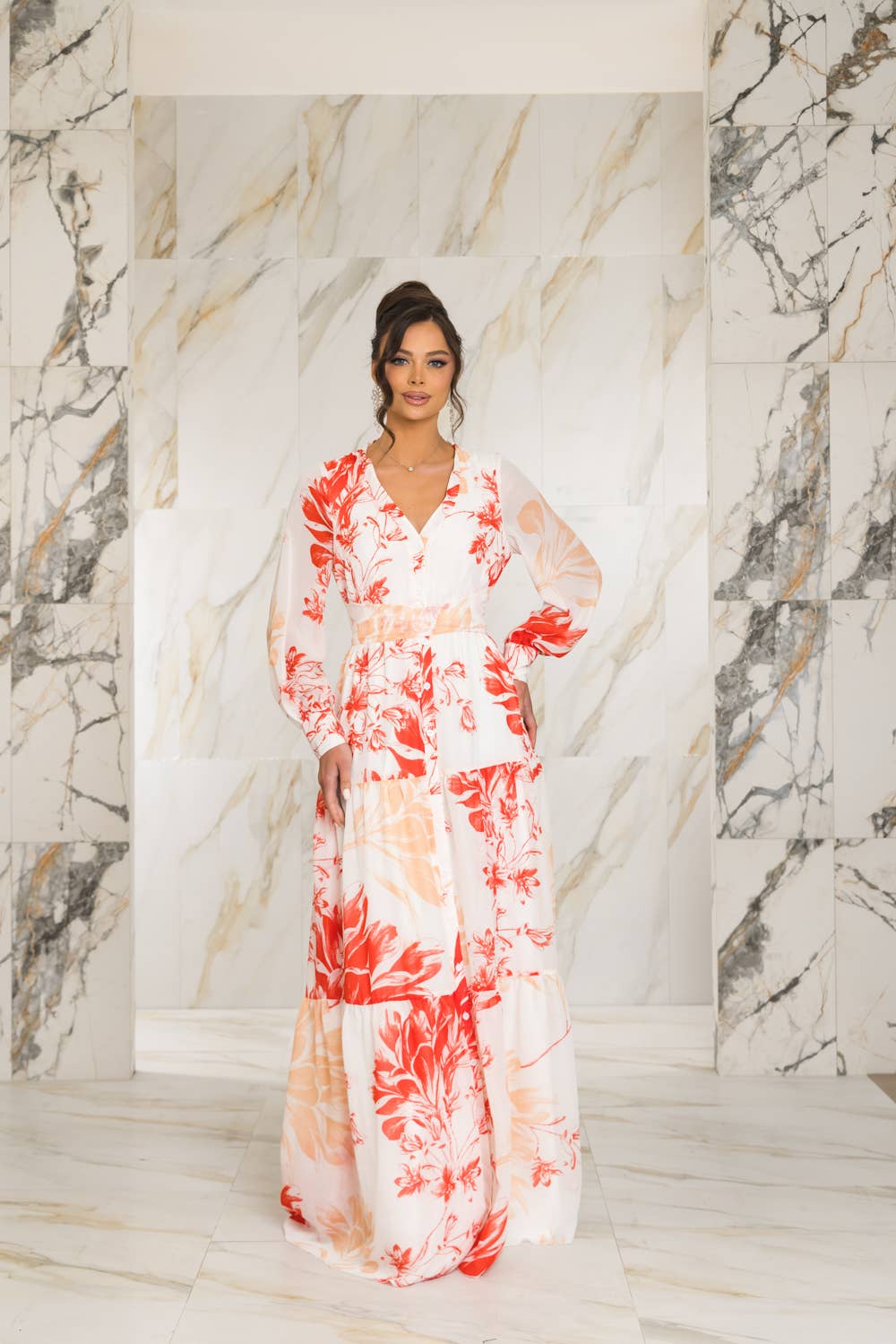 CHIFFON BUTTON DOWN FLORAL MAXI DRESS