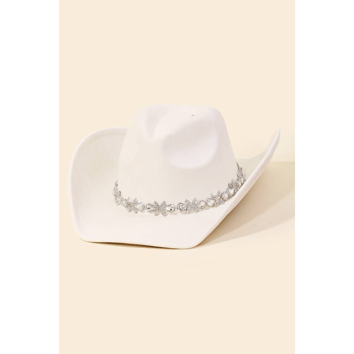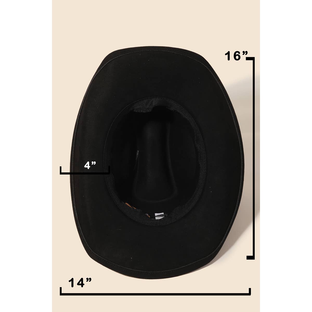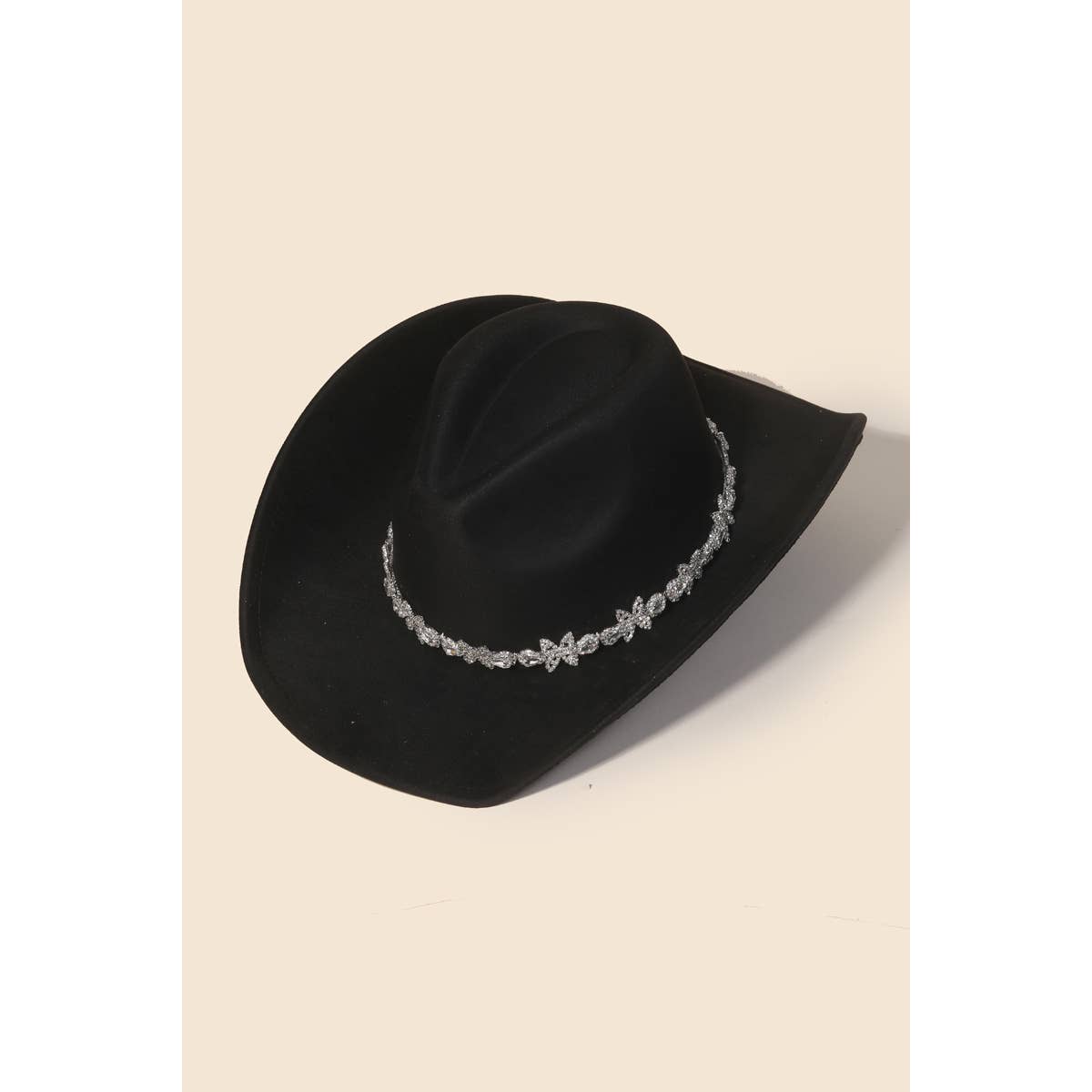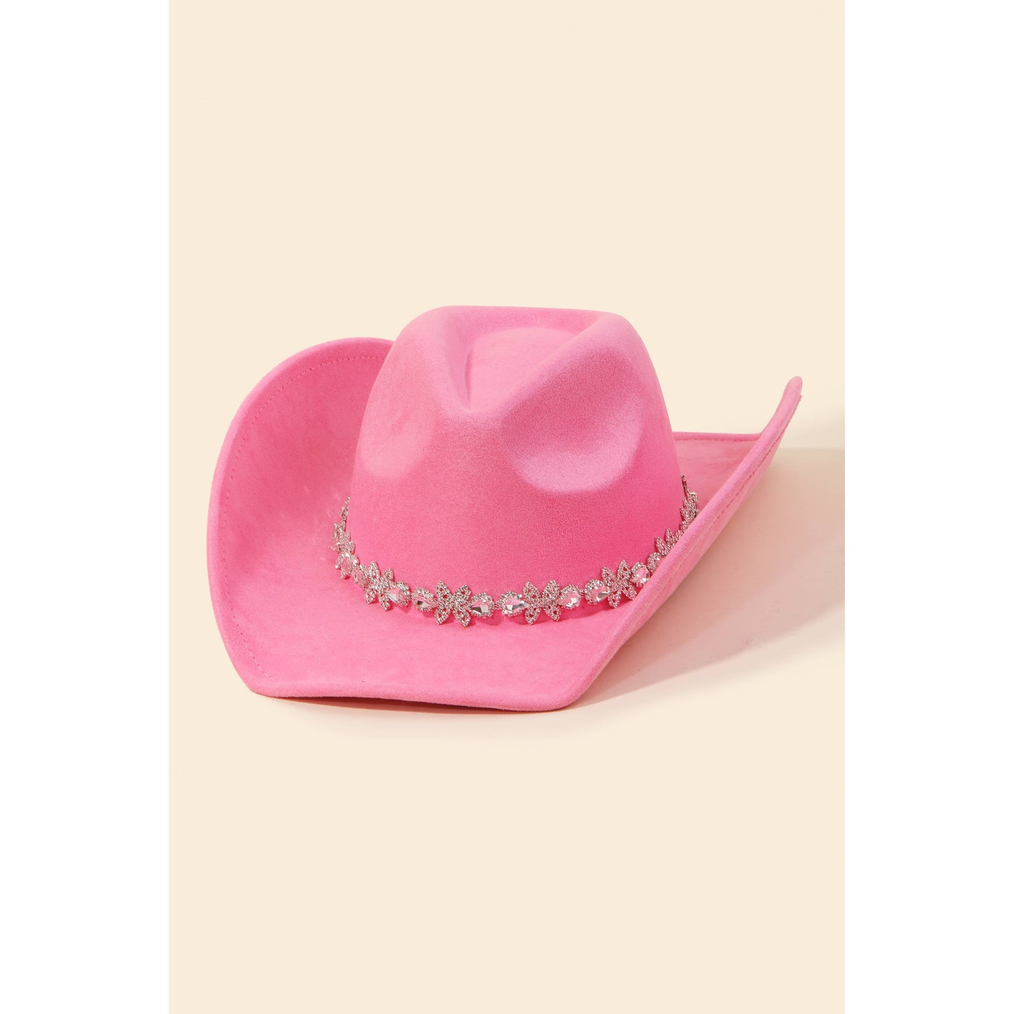 Introducing our Floral Rhinestone Strap Cowboy Hat, designed to elevate your style with a bold and unique flair. Crafted from faux suede, this accessory boasts an exceptional floral rhinestone strap, perfect for both casual and formal occasions. Made with 90% Polyester and 10% Alloy, it offers durability and style. Plus, featuring an adjustable inner string for a comfortable and customized fit.