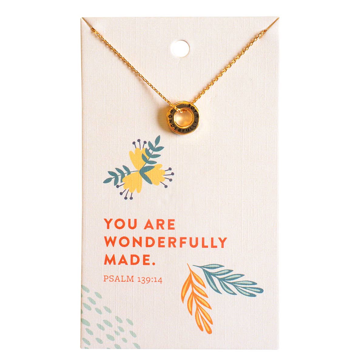 Embrace your God-given gifts and unique personality with this “Wonderfully Made” Keepsake Card Necklace in Gold by grace & truth. Let this chic accent remind you God has a plan for your life, and you are a beloved creation of the King of Kings. Our Keepsake Card Necklaces make a thoughtful gift or an inspirational pick-me-up to remind yourself of God's love and faithfulness! Each necklace design is artfully crafted with a charm or icon that beautifully represents the special message on the card. Perfect to pin to a memo board or even a bathroom mirror for everyday inspiration.