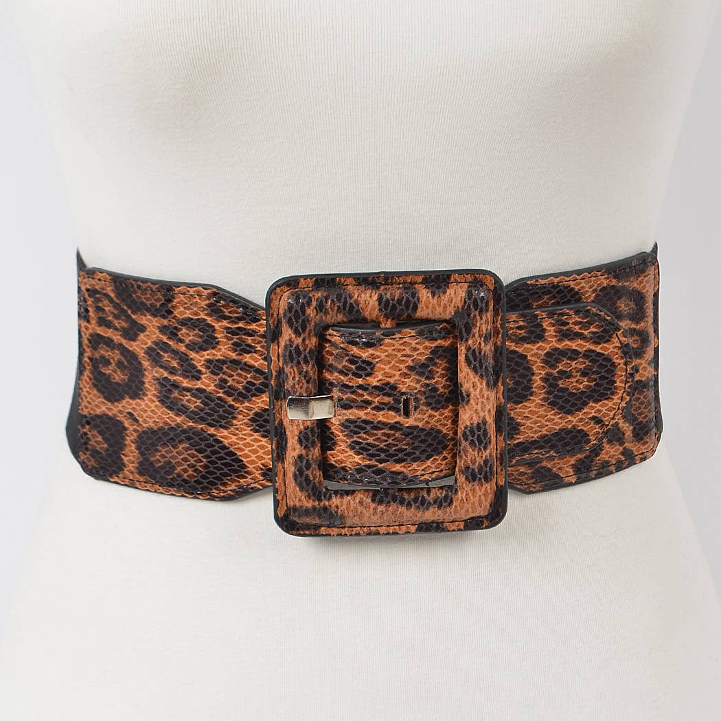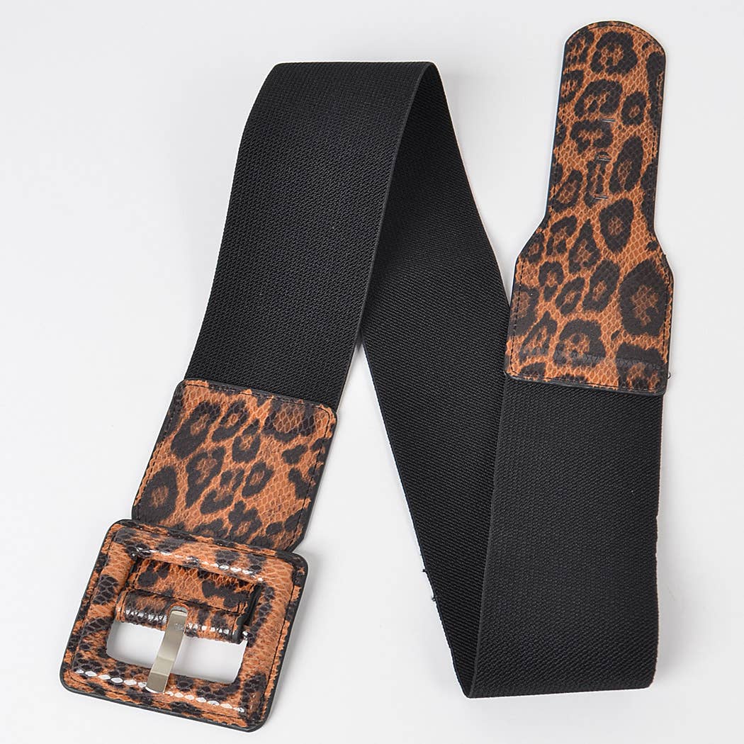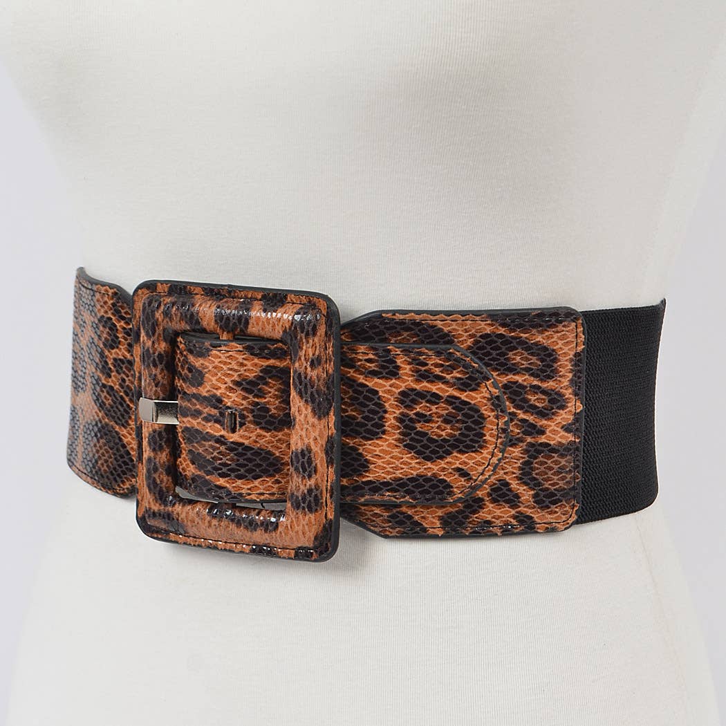 Leopard Faux leather Plus Size Elastic Belt
