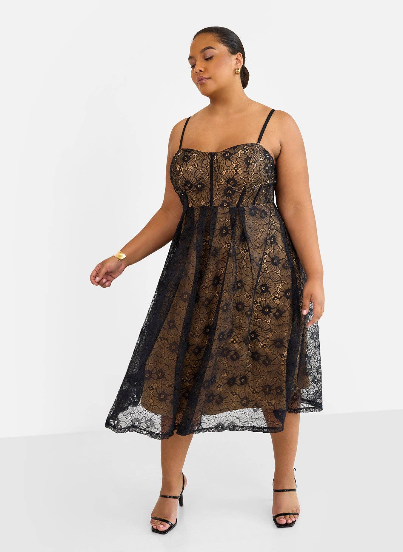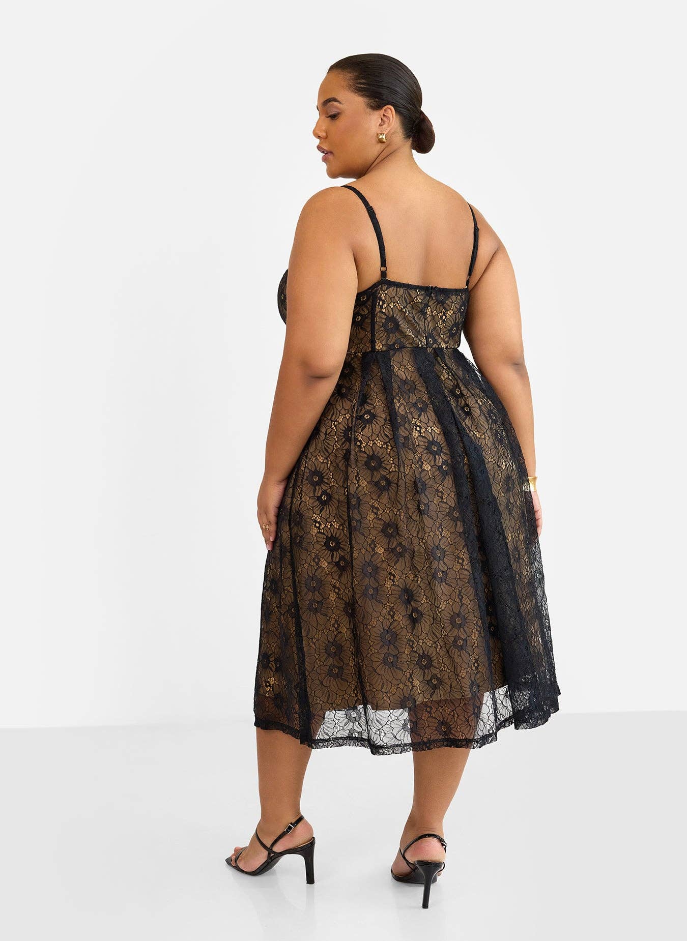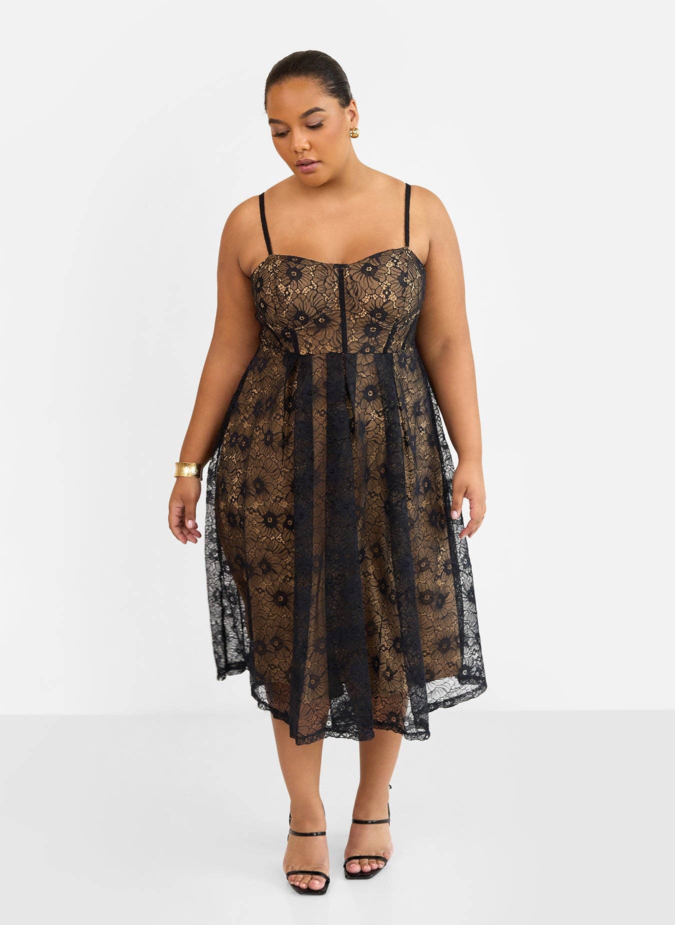 Lorelei Lace Overlay Midi A Line Dress - Black