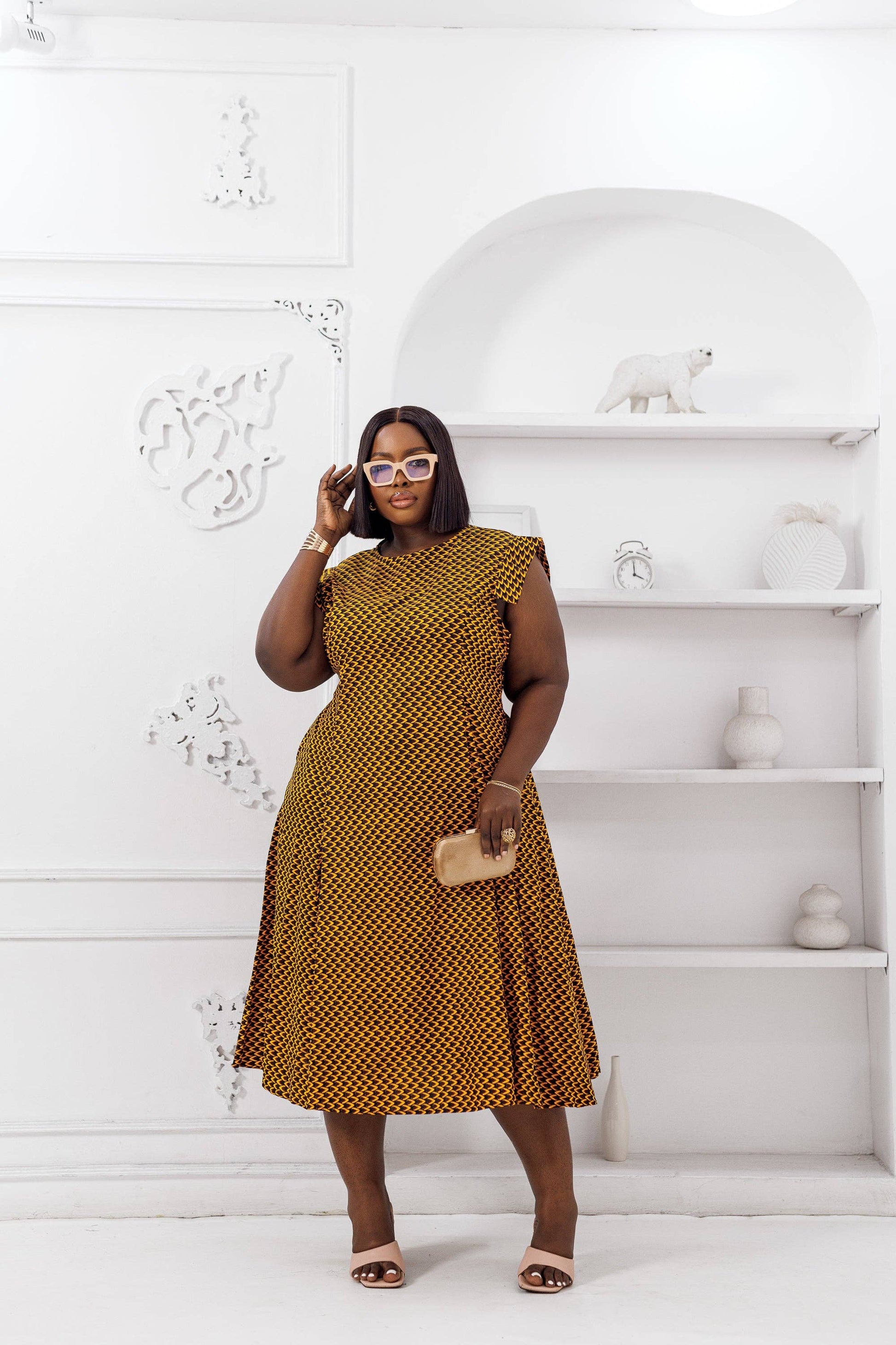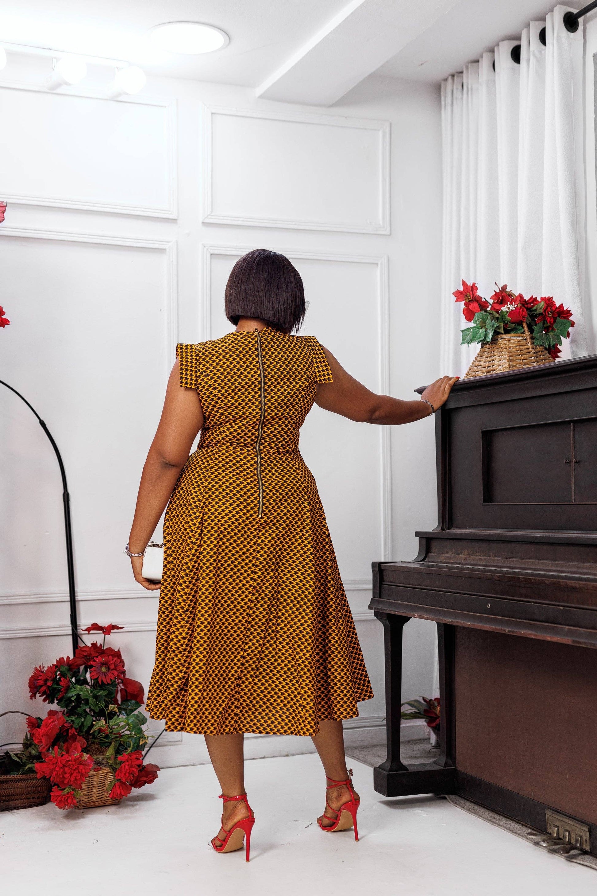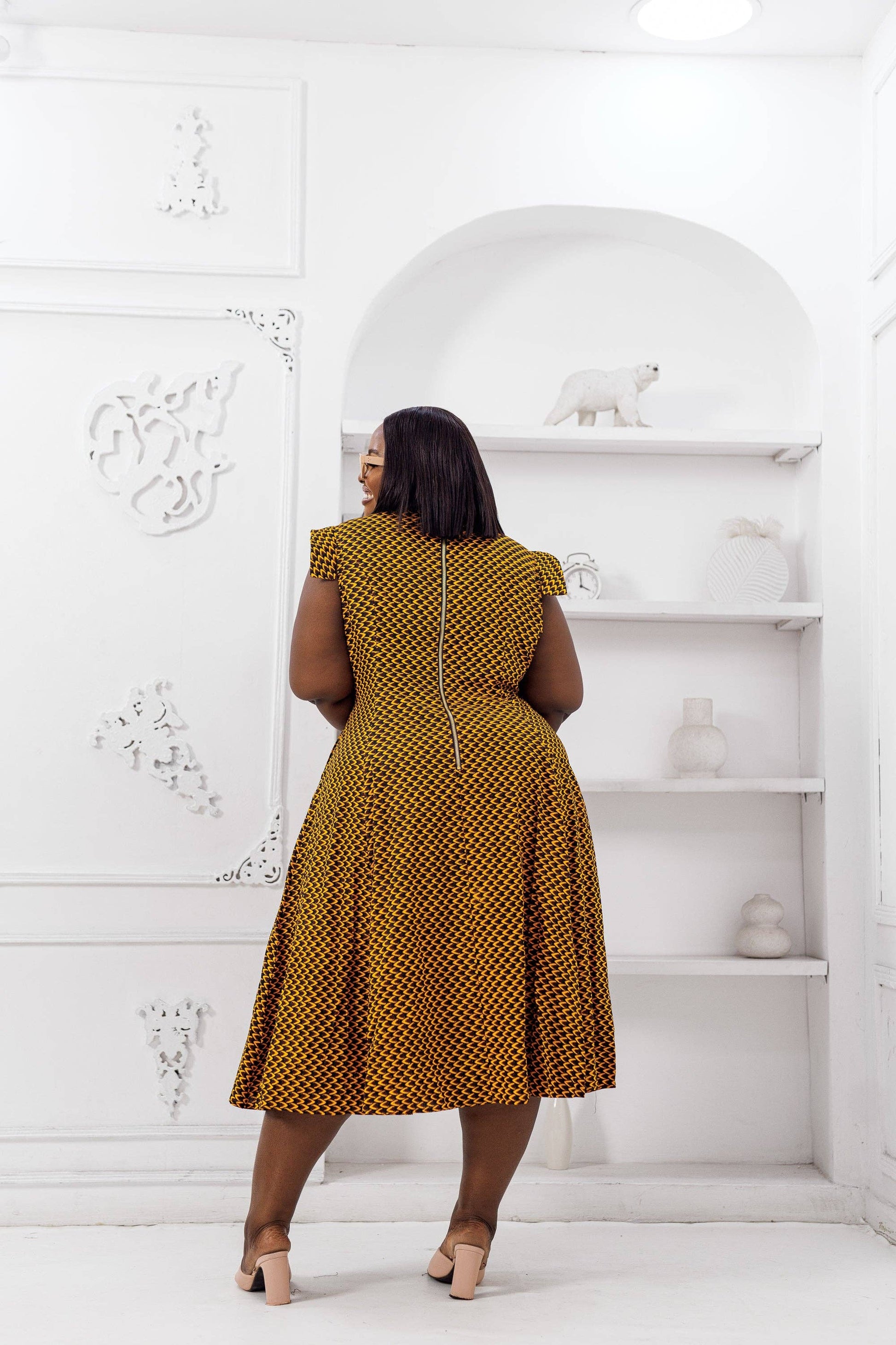 Make a statement in this standout MINO African Print MIDI Dress! With its sassy square sleeves and invisible front zipper, it's sure to get you noticed. Plus, with a back zipper, it's as easy to put on as it is to look fabulous! (Fashionably, of course!)