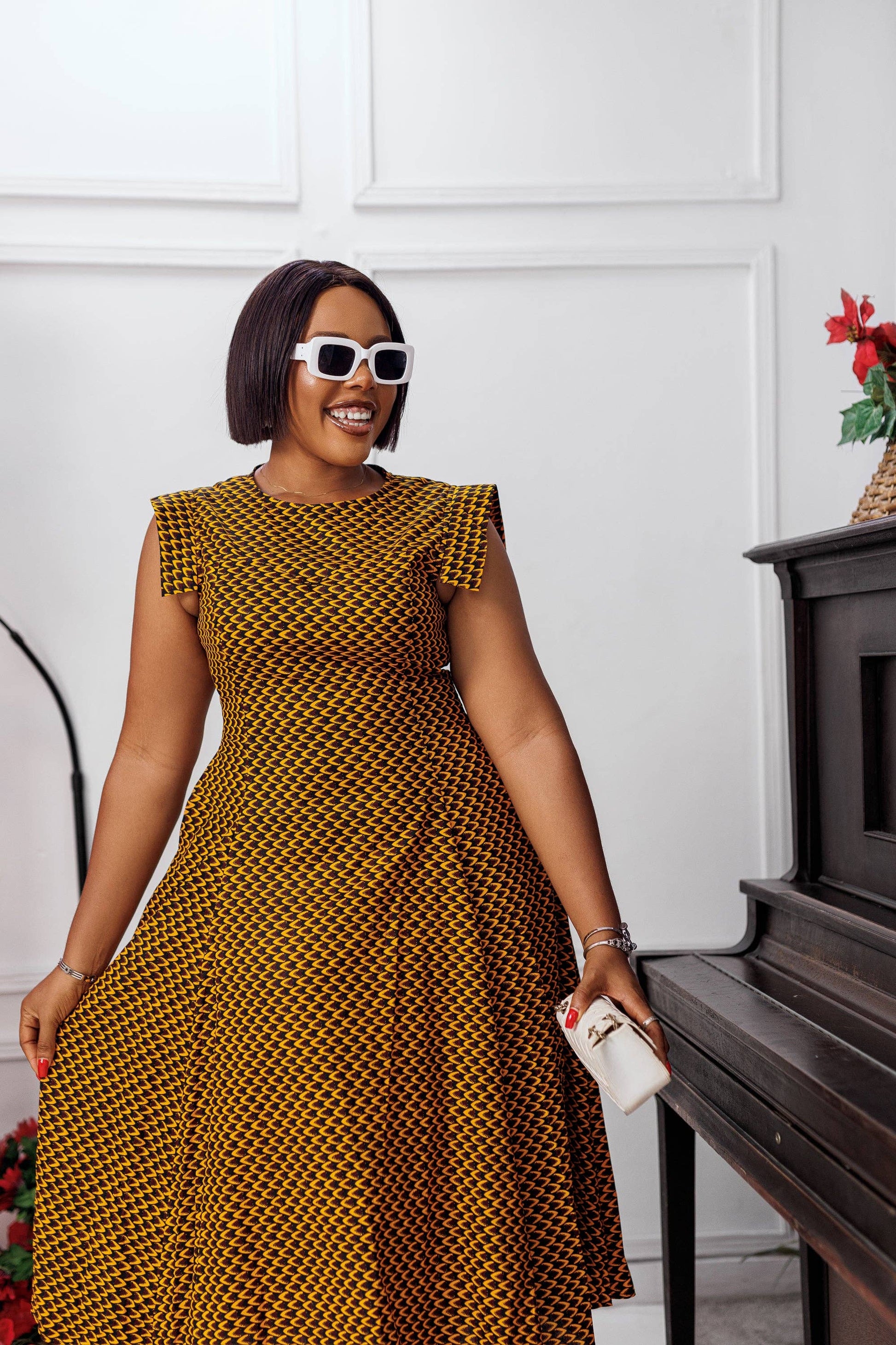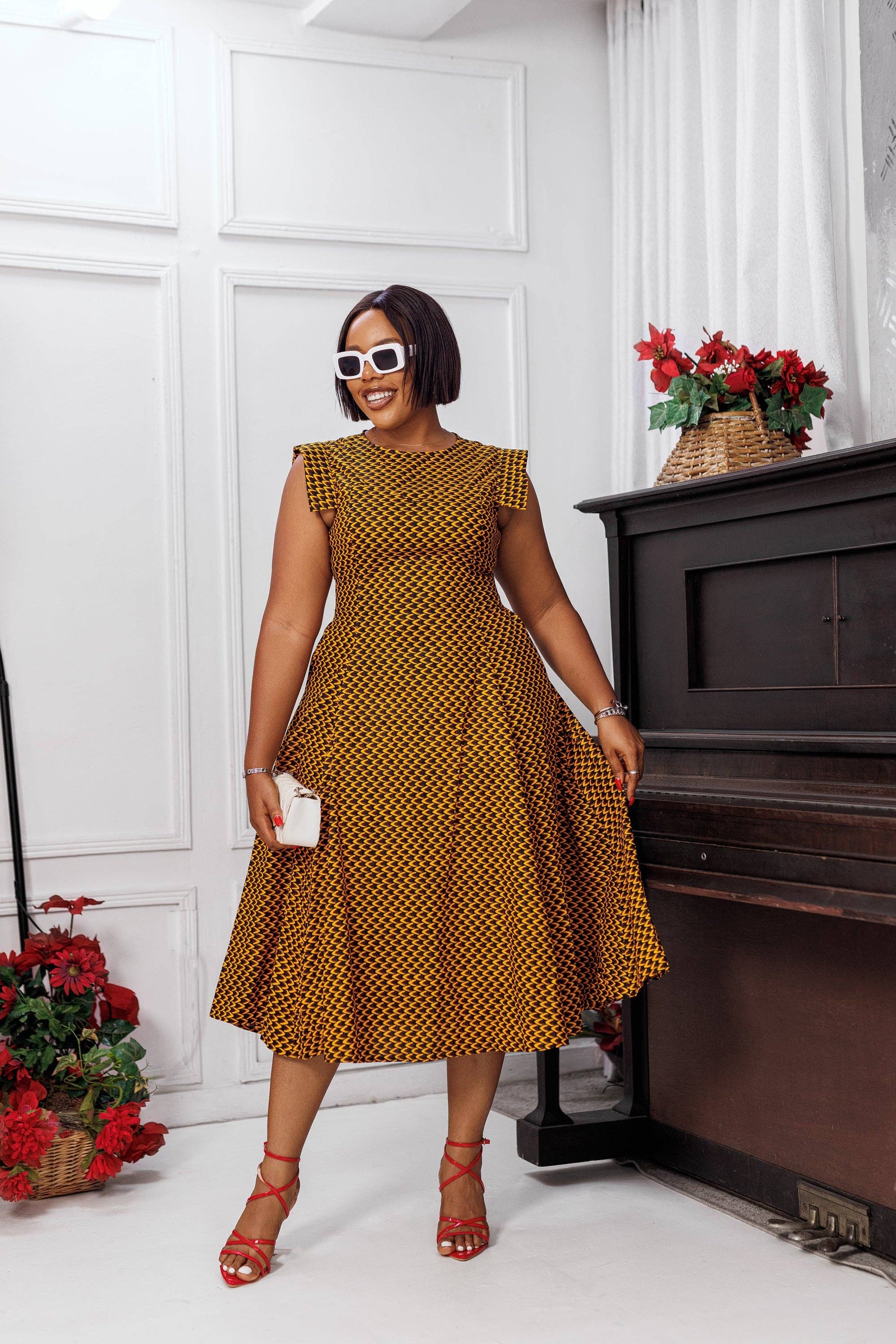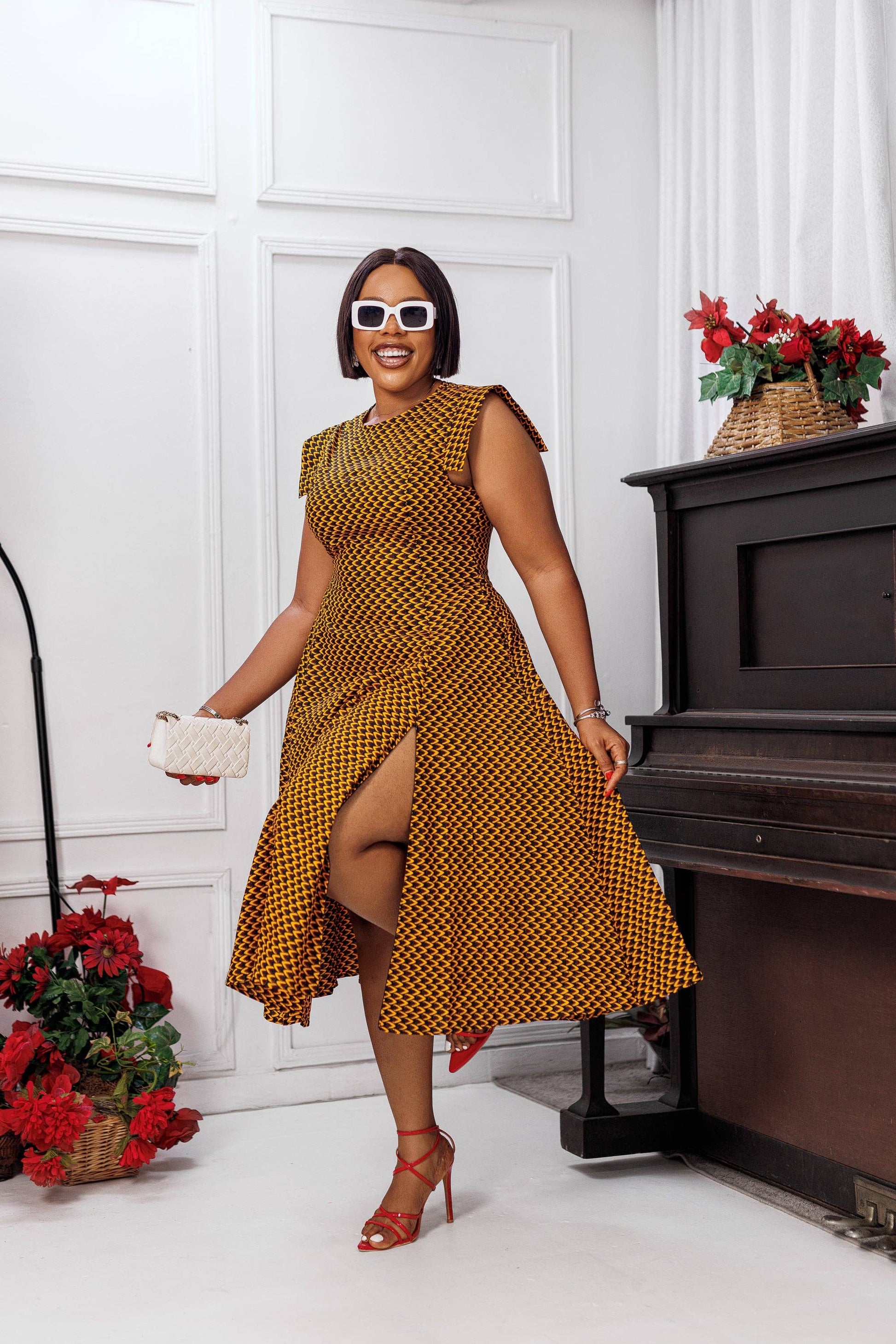 Make a statement in this standout MINO African Print MIDI Dress! With its sassy square sleeves and invisible front zipper, it's sure to get you noticed. Plus, with a back zipper, it's as easy to put on as it is to look fabulous! (Fashionably, of course!)