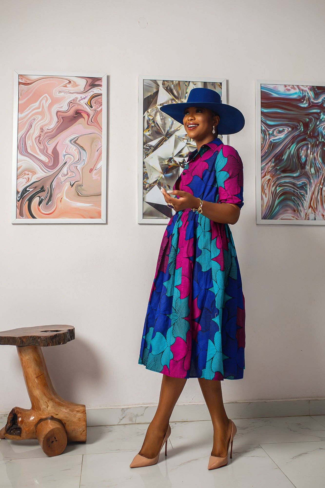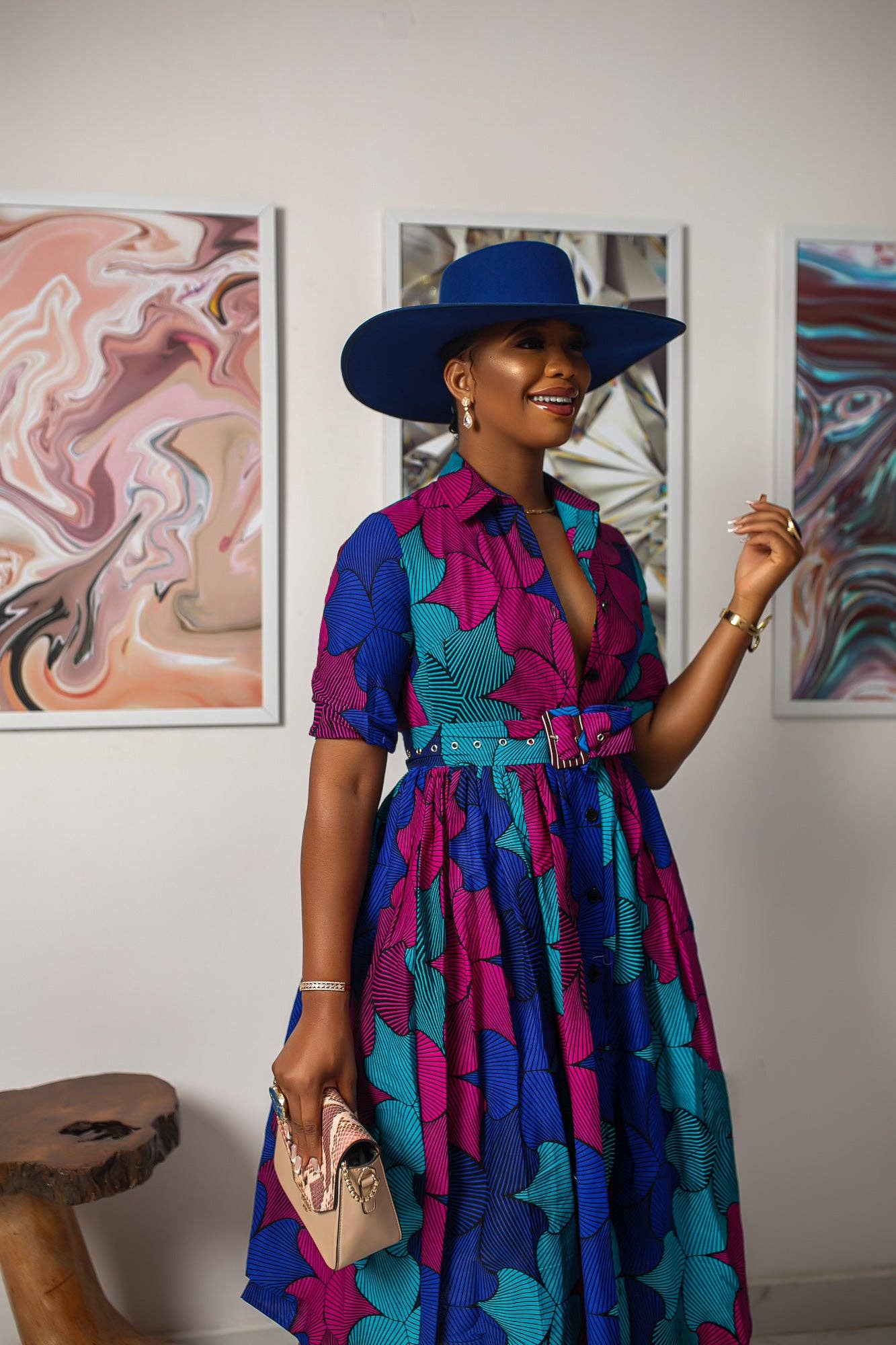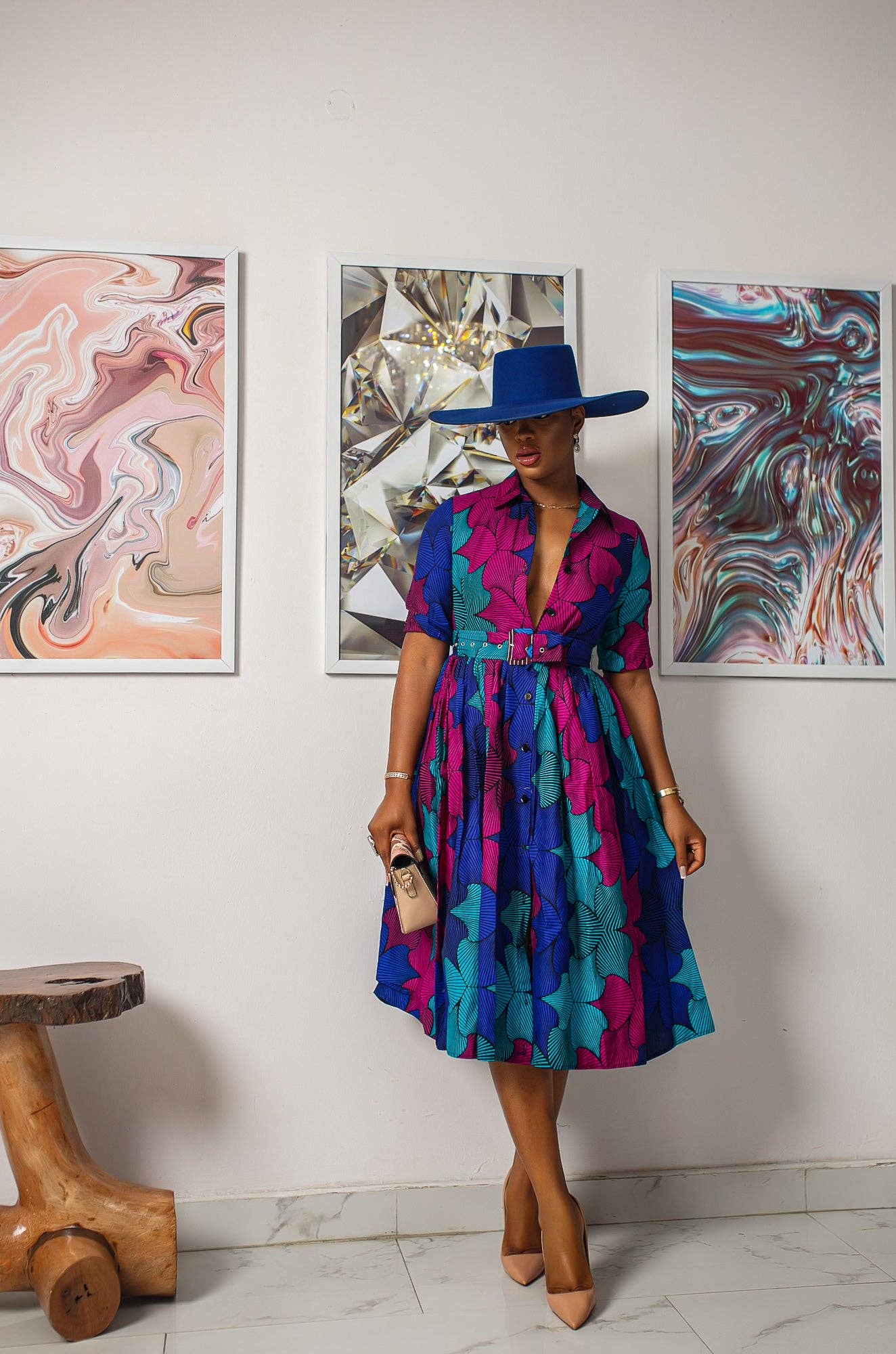 Styled in a classic button-down dress with a gathered waist, this Gathered style African print dress features a detachable belt and side pocket. Crafted with a blend of vibrant colors, MOREMI offers a timeless piece that adds a touch of ethnic flair to any wardrobe.
