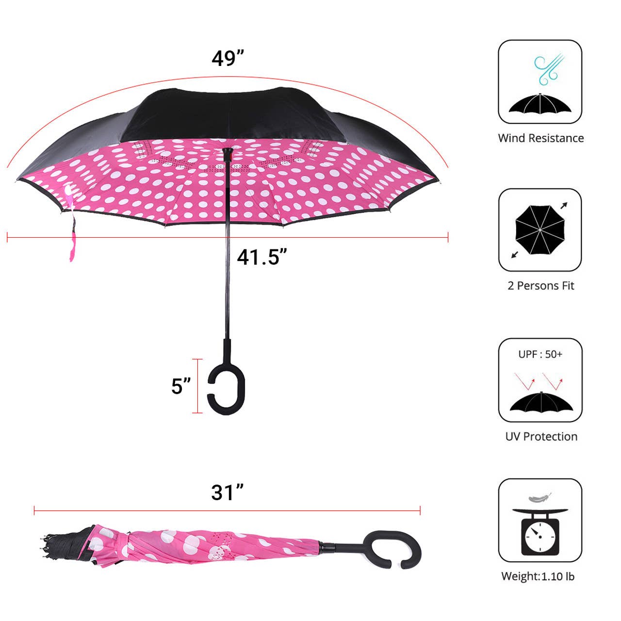 Pink Big Polka Dot Double Layer Inverted Umbrella - UM18063