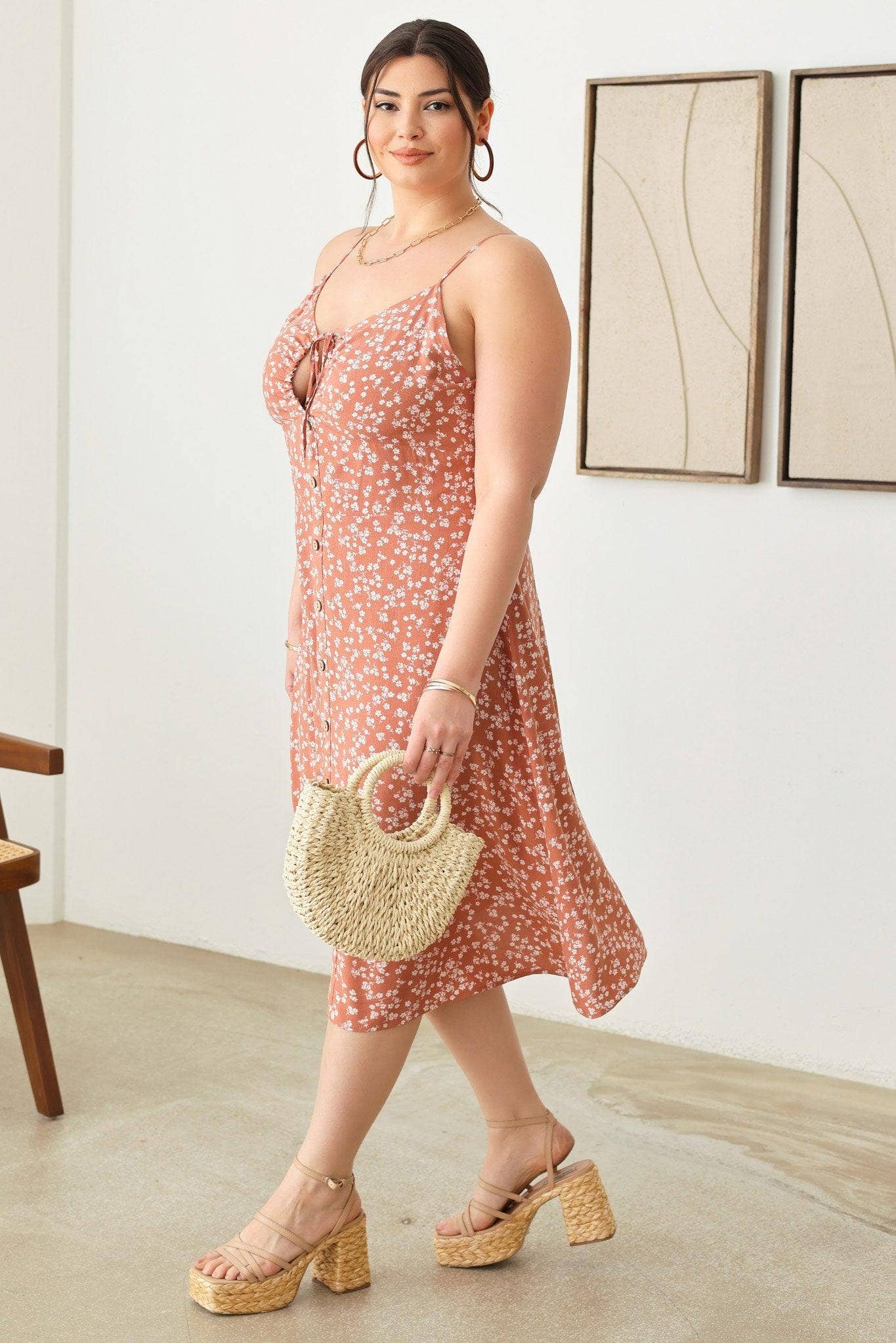 π€ Spice up your wardrobe with our Plus Size Boho Floral buttoned Midi Dress. With a smocked back for a perfect fit, this dress is the epitome of bohemian style. Comfortable and stylish, this midi dress is perfect for any occasion. Get ready to turn heads in this unique and trendy piece!