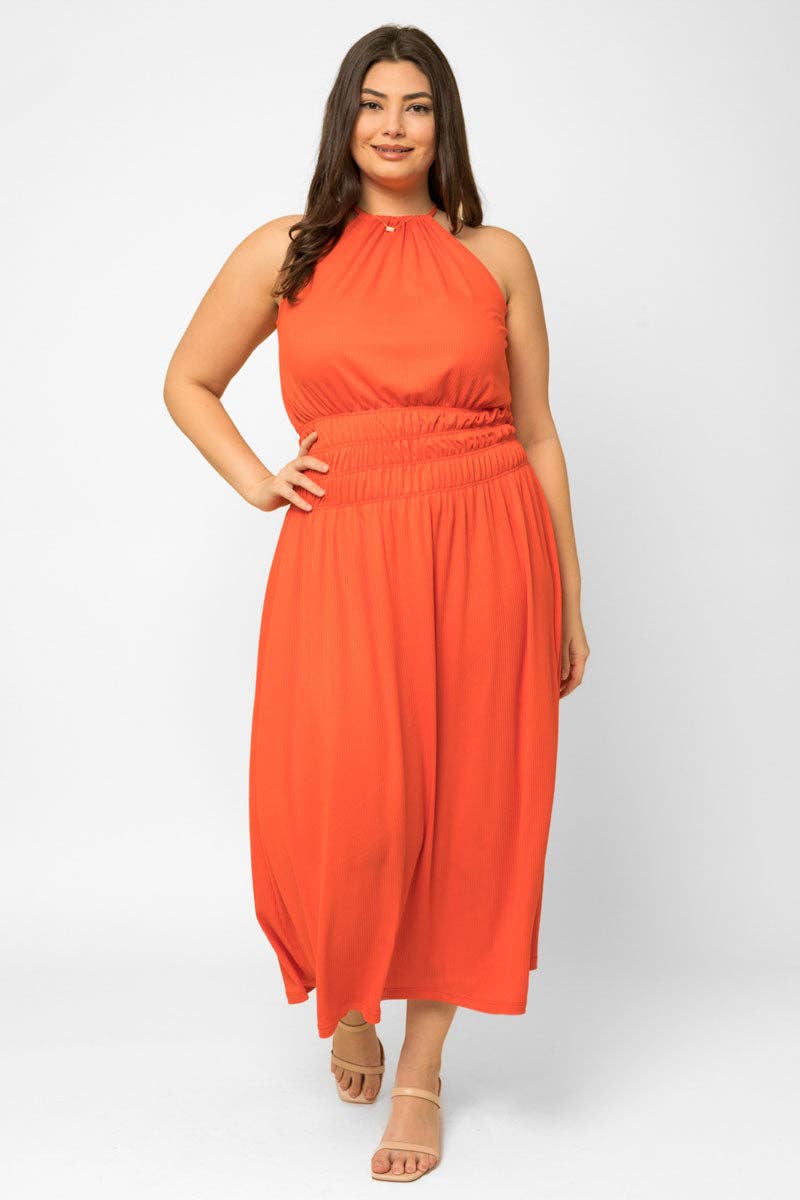 Plus Size Ribbed Halter Elastic Waist Maxi Dress