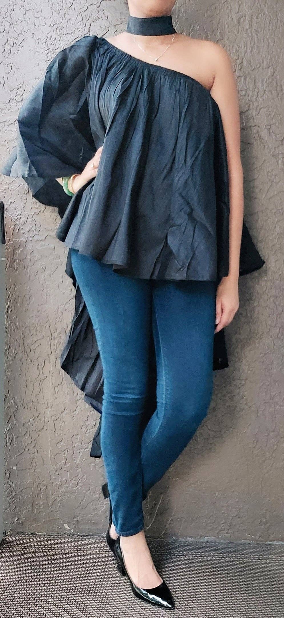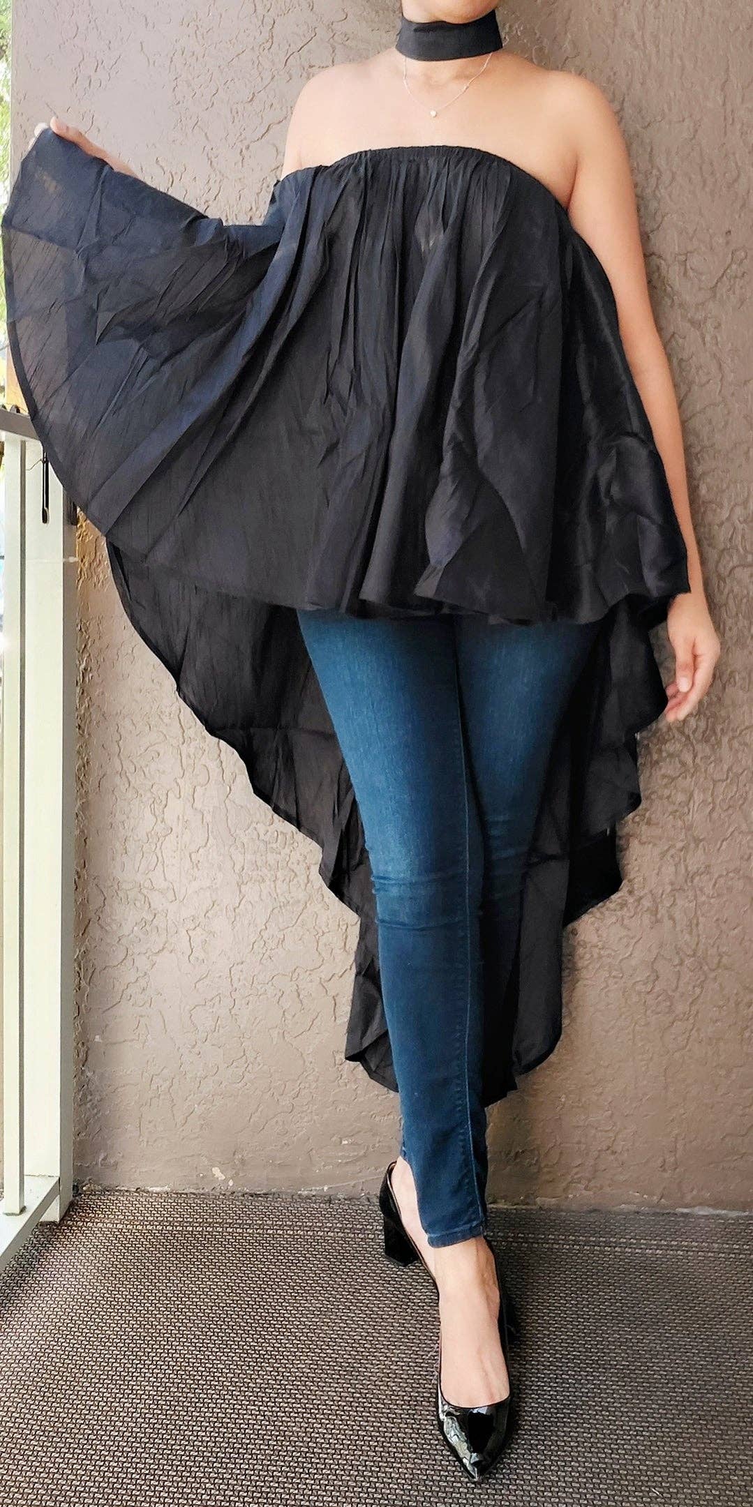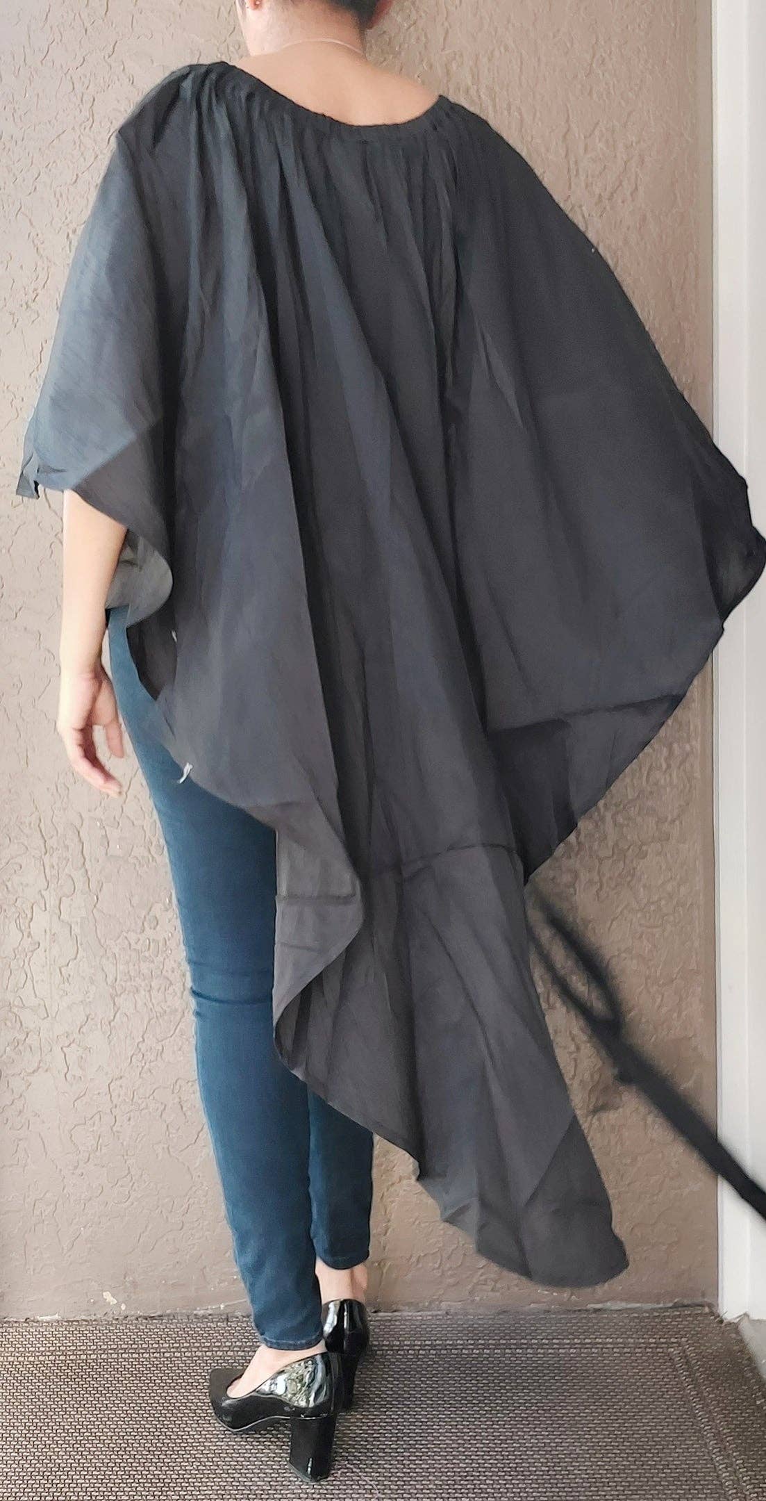 Poncho Blouse / Hi Lo Skirt/ Multi Wearable/ Solid- Black