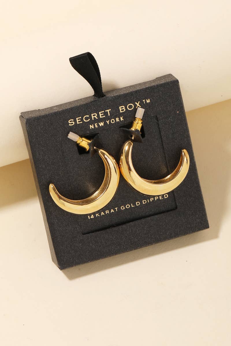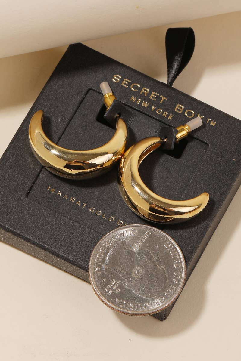 A modern work of art, these hoop earrings exude a mysterious and alluring design reminiscent of a hidden treasure chest. A must-have for elevating any ensemble, this exquisite accessory is offered in both Gold and Silver options.