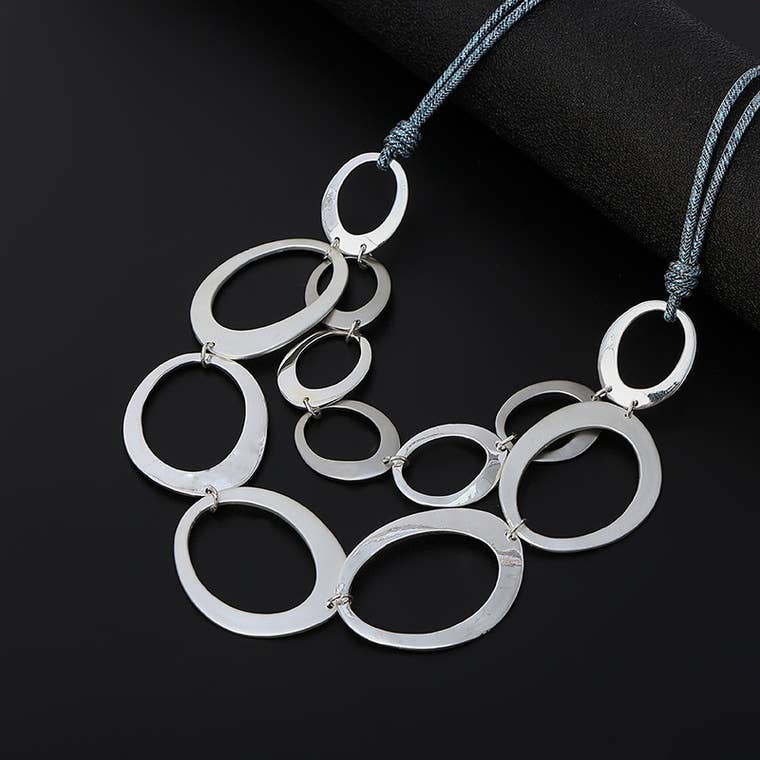 Introducing the Silver Circles Necklace from A Touch of Style LLC. Trendy yet timeless, this link & chain necklace reflects your personal style with high-quality materials. A perfect blend of luxury and accessibility. Elevate your accessory collection with the Silver Circles Necklace.