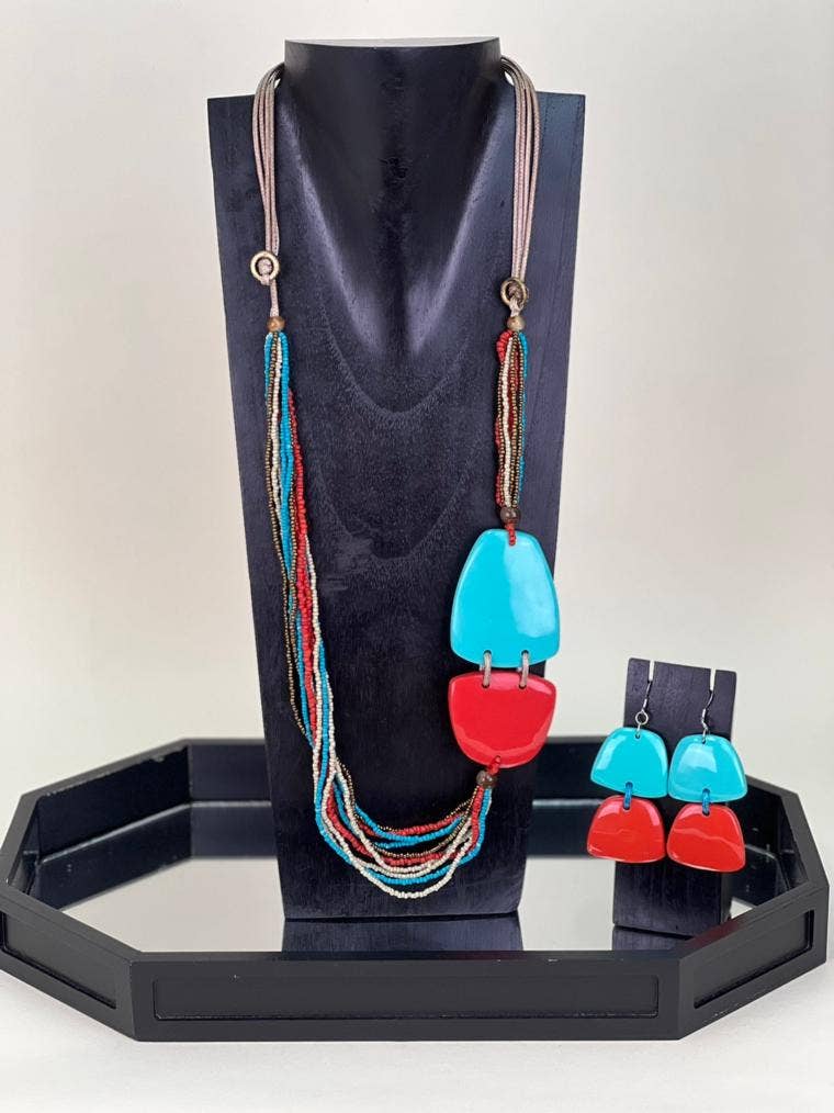 Turq/Org Necklace/Earring Set