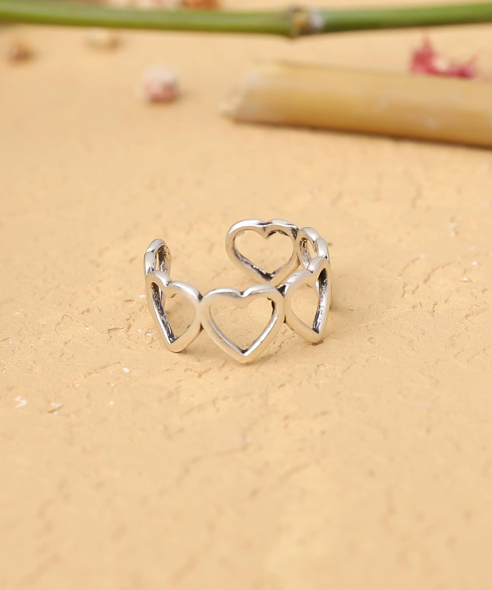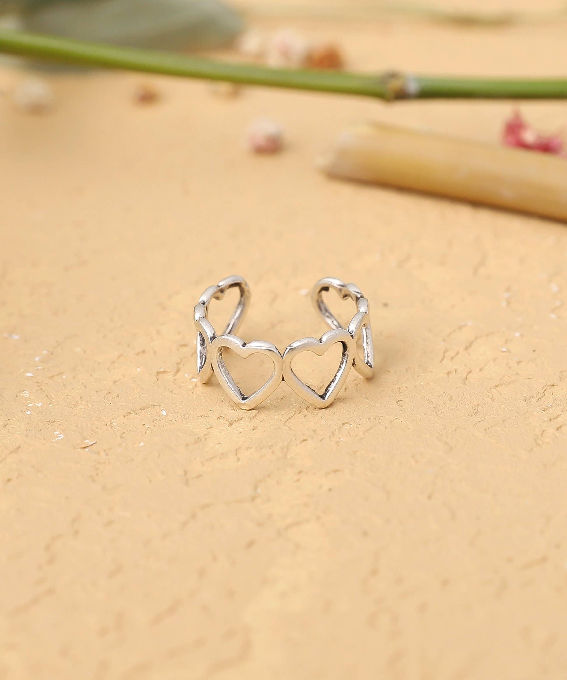 Add a touch of sophistication to your jewelry collection with our exquisite silver ring, handcrafted with love. The charming hearts design and unique free size make it perfect for any outfit and occasion. Crafted from brass, this fashion statement is a natural ethnic hand-crafted masterpiece that is hypoallergenic and free of lead, nickel, and cadmium. Perfect for parties and festivals, it also makes for a thoughtful gift for women.
