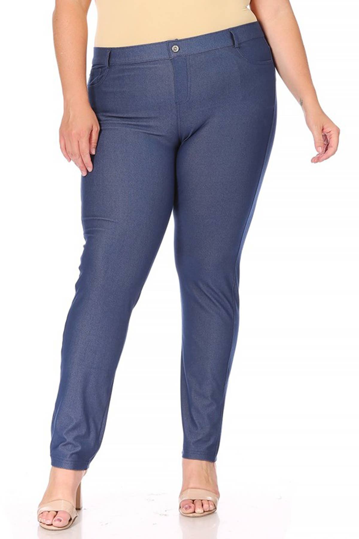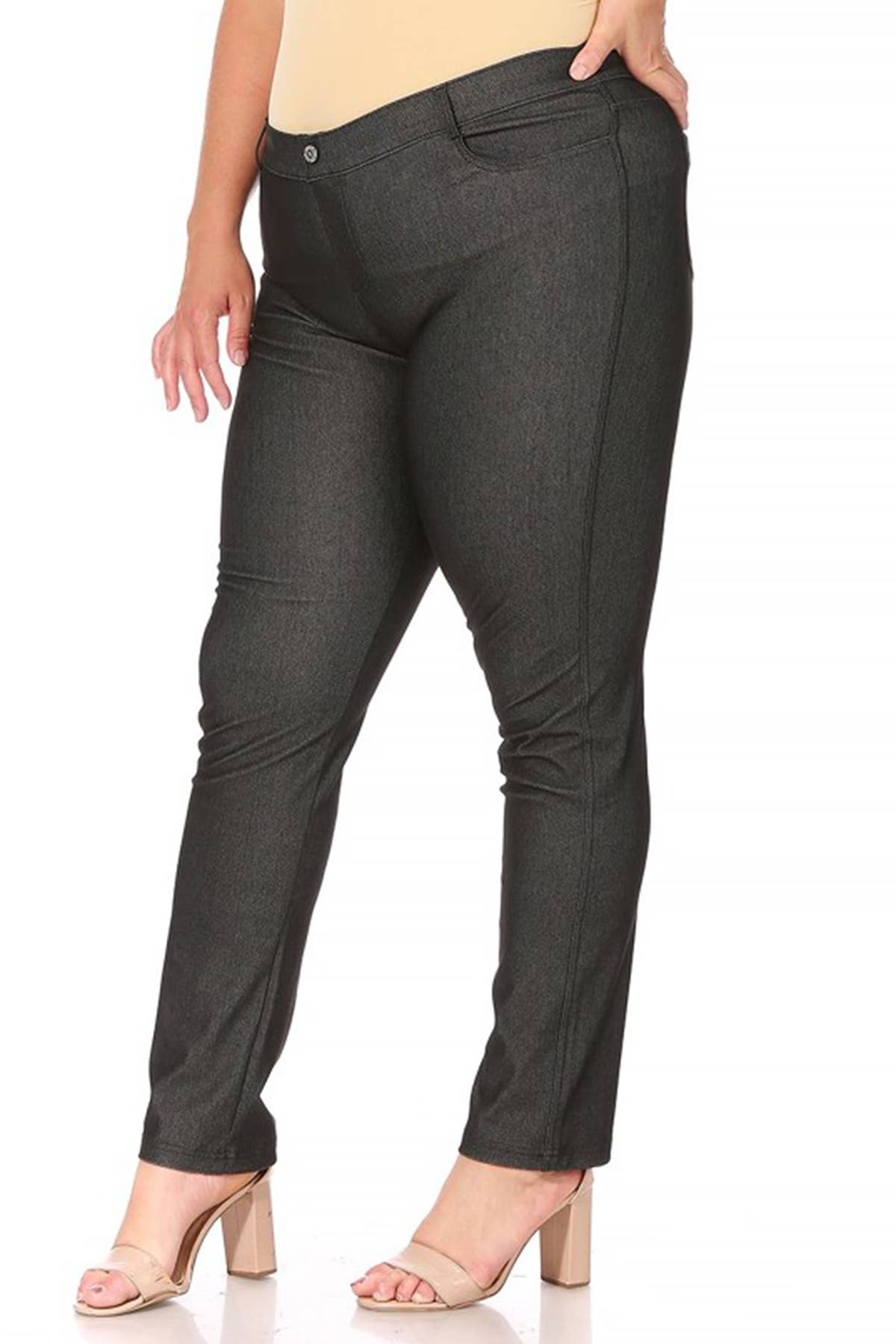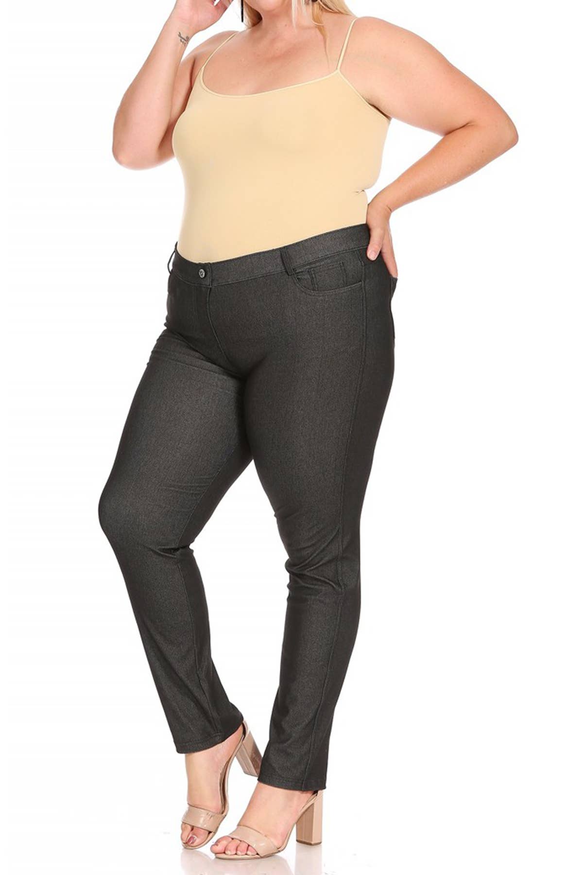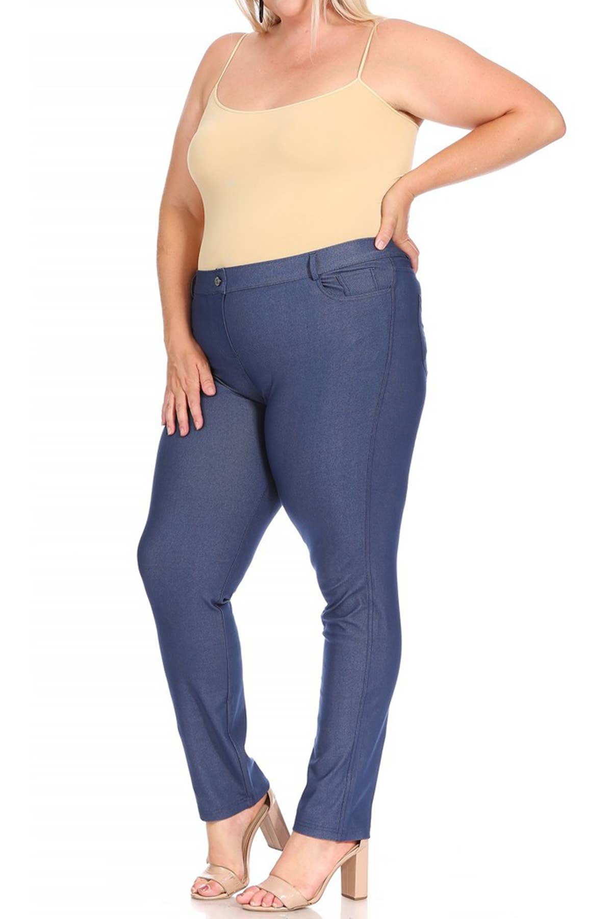 Plus size, stretchy, pull up, full length jeggings with belt loops, pockets, and button accent. Whether you want daily casual wear, dating, shopping, travel, office, school or workouts at the gym, these leggings are best choice to keep you comfortable and stylish.