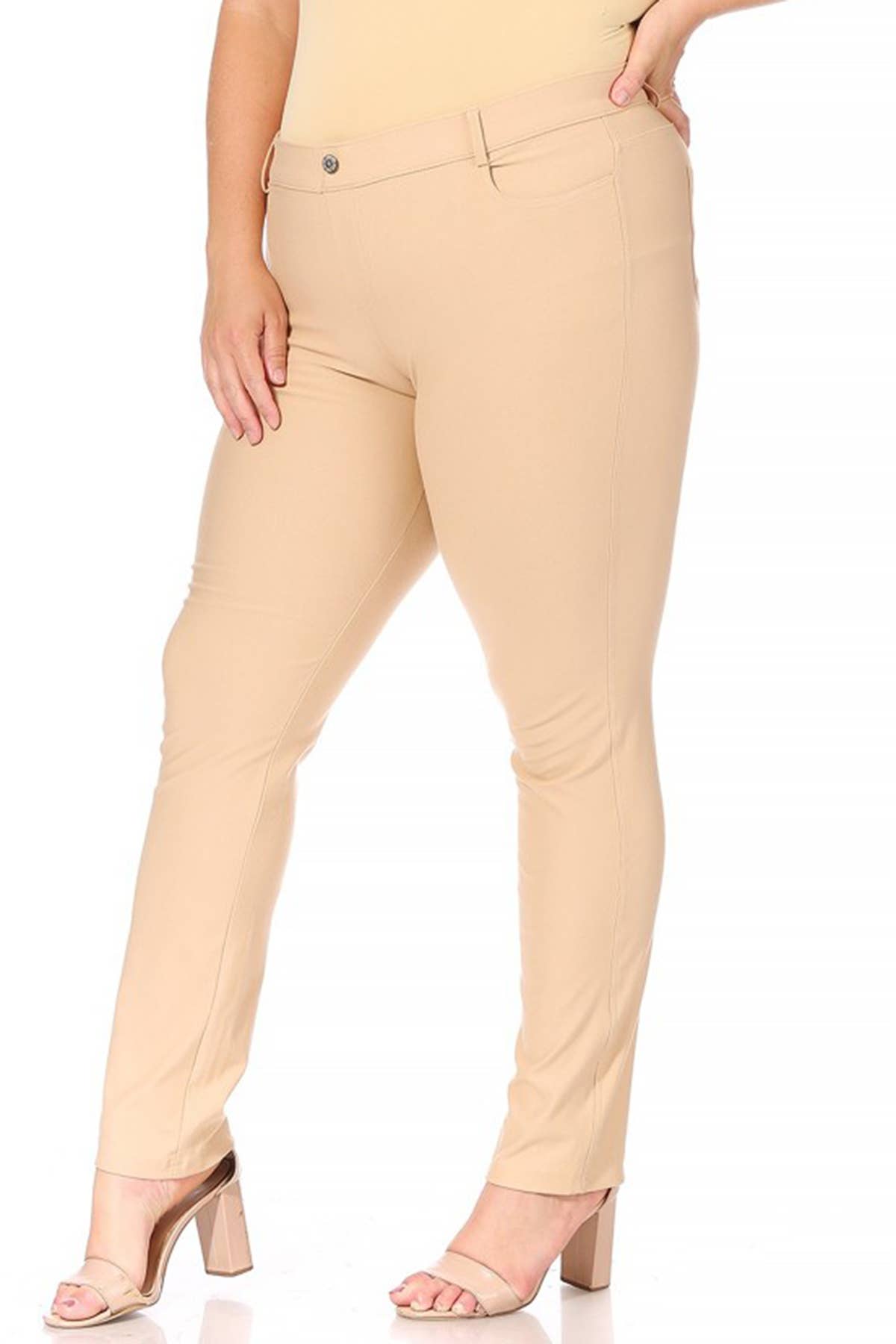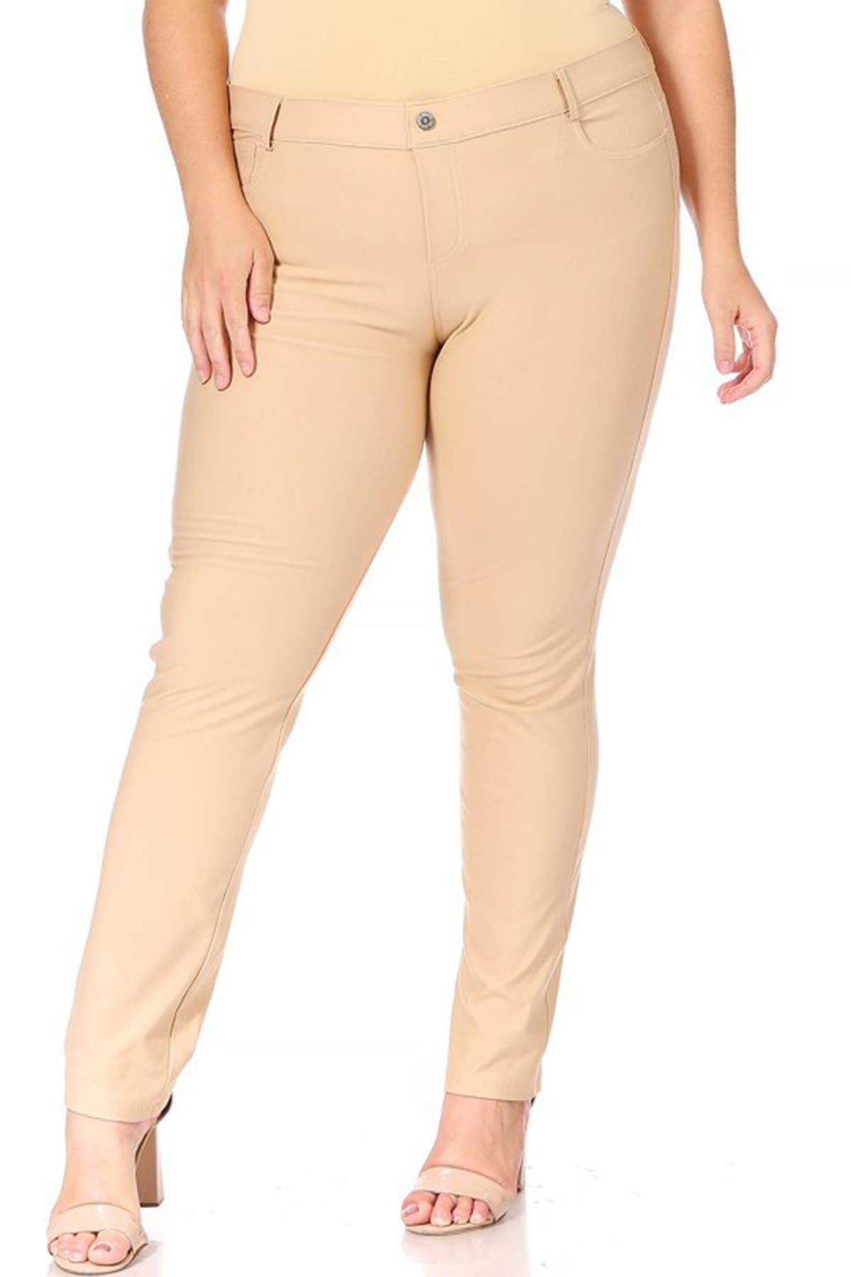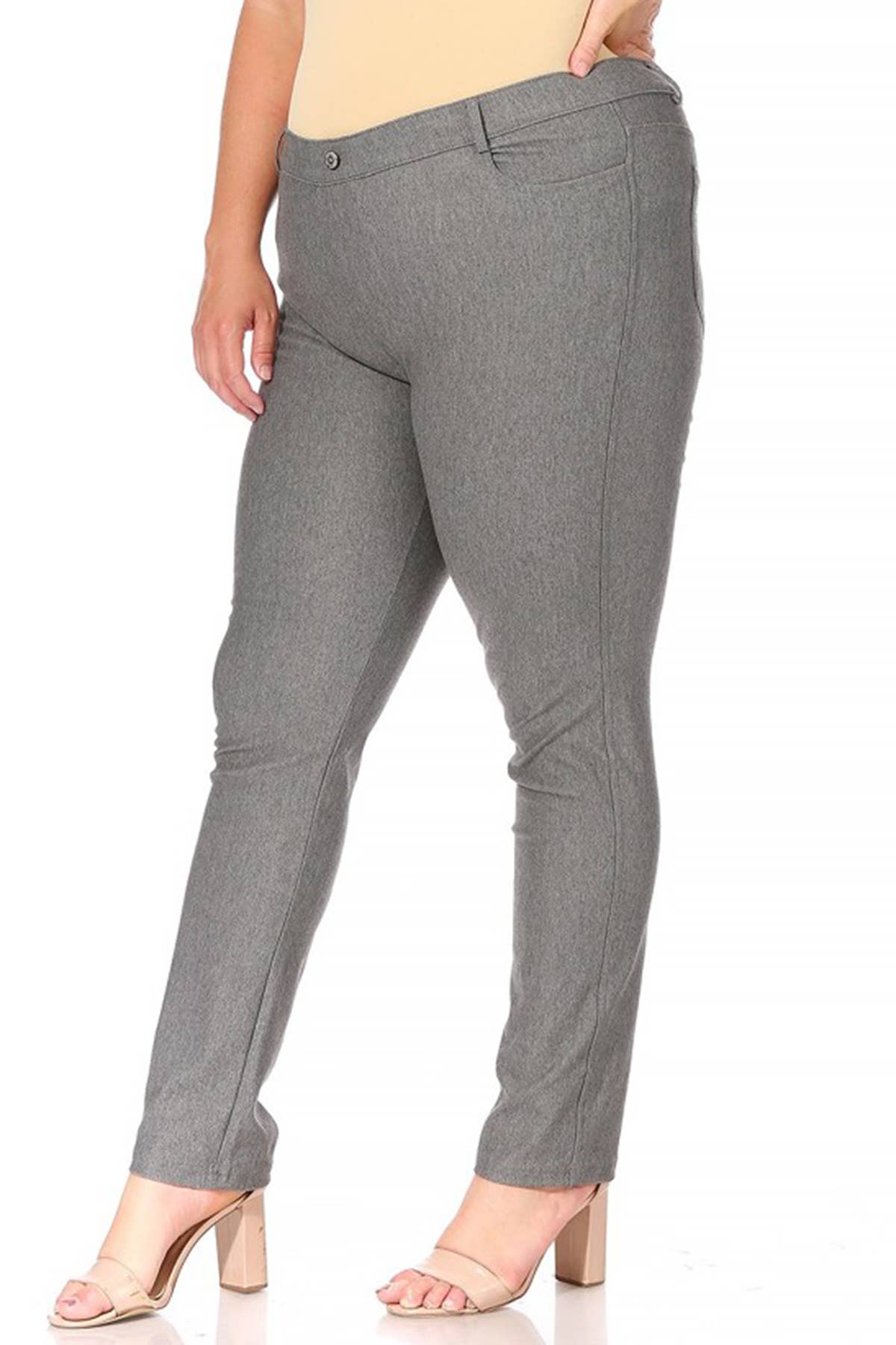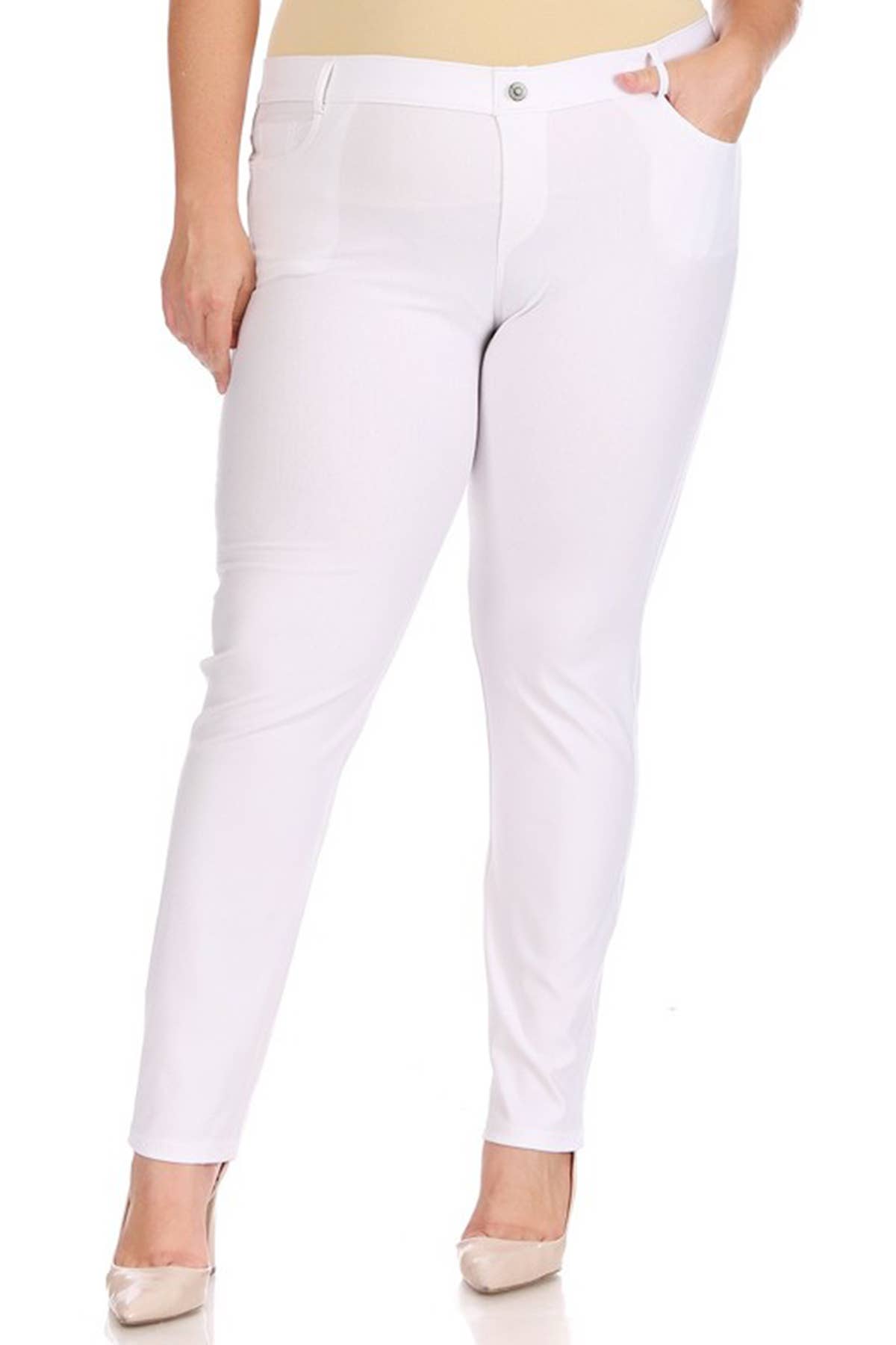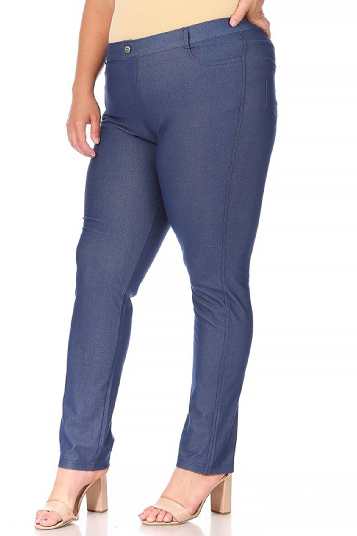 Plus size, stretchy, pull up, full length jeggings with belt loops, pockets, and button accent. Whether you want daily casual wear, dating, shopping, travel, office, school or workouts at the gym, these leggings are best choice to keep you comfortable and stylish.