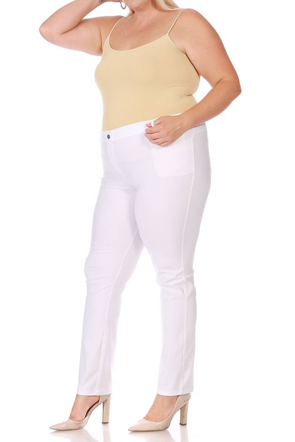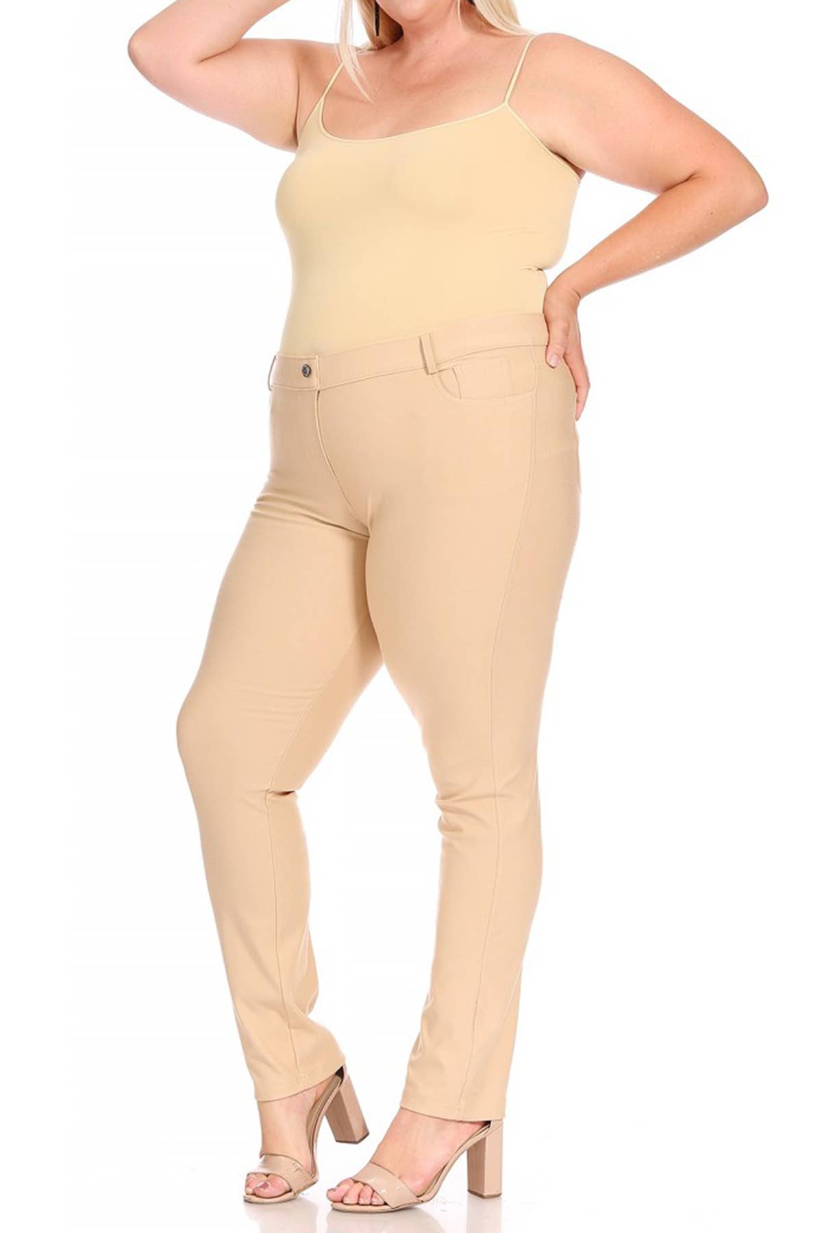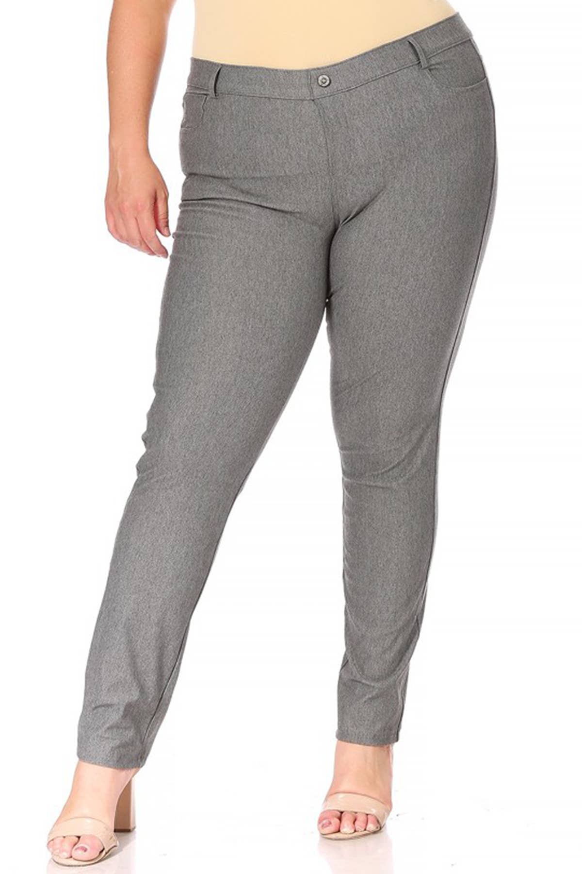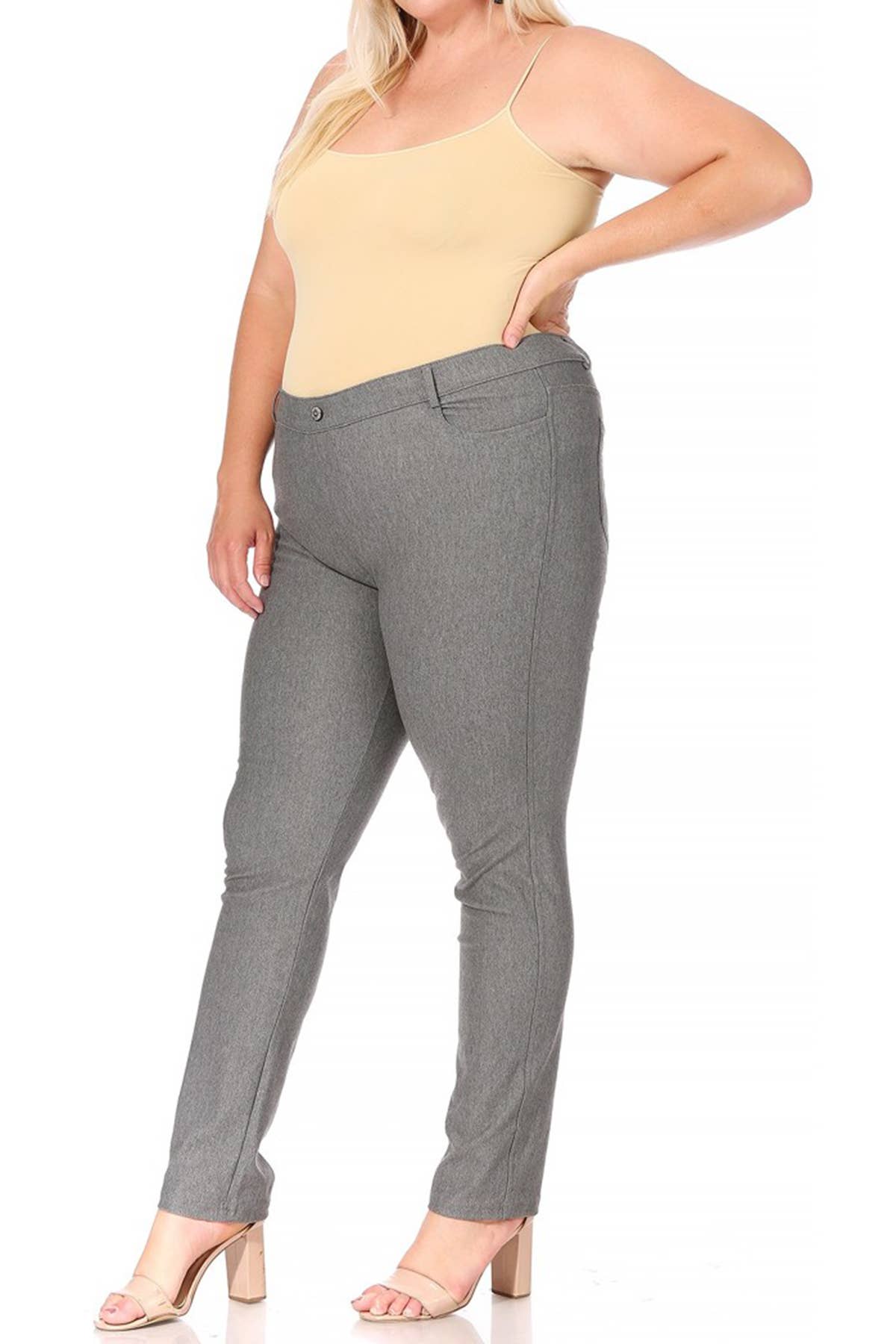 Plus size, stretchy, pull up, full length jeggings with belt loops, pockets, and button accent. Whether you want daily casual wear, dating, shopping, travel, office, school or workouts at the gym, these leggings are best choice to keep you comfortable and stylish.